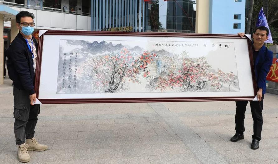 广外外校、广外大亚湾外校、广外增城实验学校分别向学校进行了捐赠。广外增城实验学校专程送来该校吴琪副校长为我校50周年创作的大型国画《桃李芬芳》 ,以此表达对我校真诚的祝福。