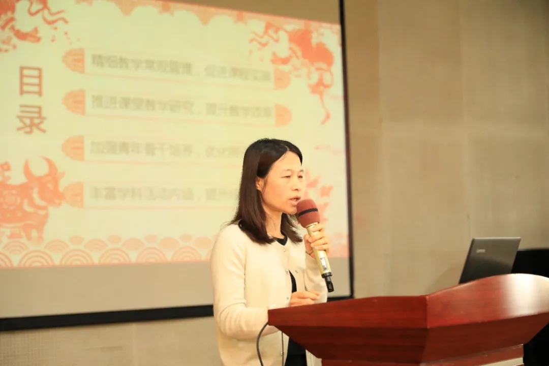 中学主管领导袁宇迪副校长对中学部的上学期工作做了总结,尤其提到了体育组在篮球、足球等球类课程教学的亮点,并对本学期的常态化疫情防控下的正常教学、学生工作、教学工作、教师队伍建设等方面做了重点部署。