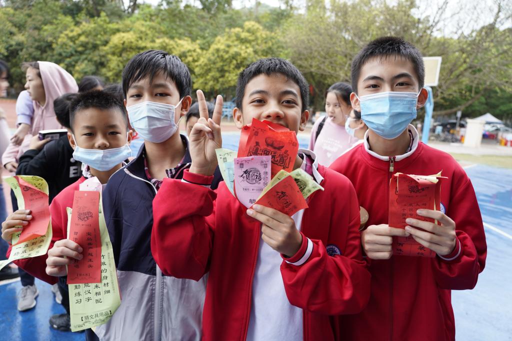 猜出灯谜之后,同学们迫不及待地排起长队到兑奖处兑奖,大家都沉浸在欢快祥和的氛围之中。