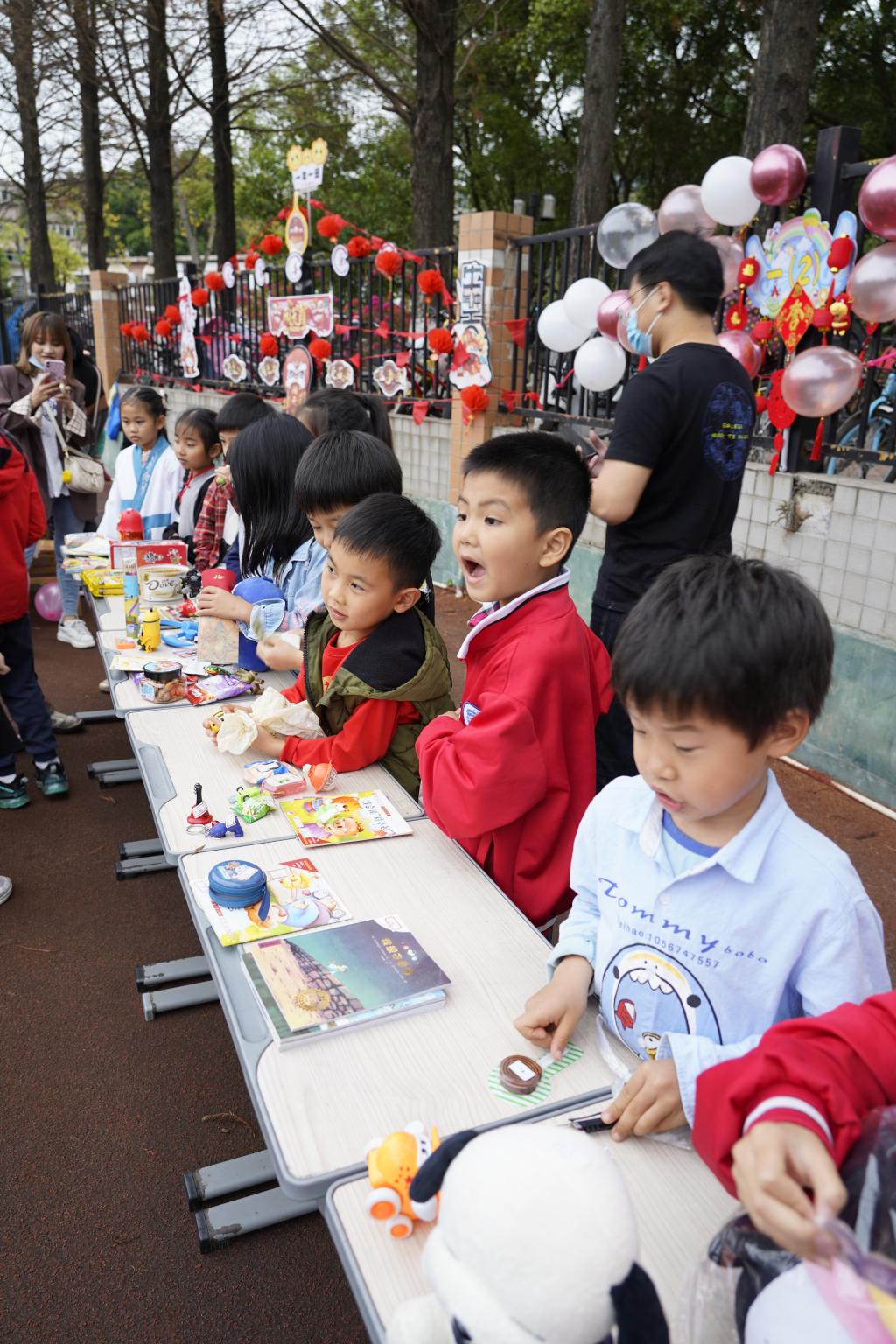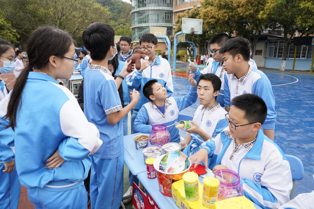 所有“商品”都是同学们自己筹备的,不仅有旧书籍、体育用品、电子音像,还有玩具玩偶、独立包装的健康食品等,每件商品都非常实惠。同学们有的自行购买,有的进行物物交换,整个校园洋溢着节日的喜悦和欢腾。