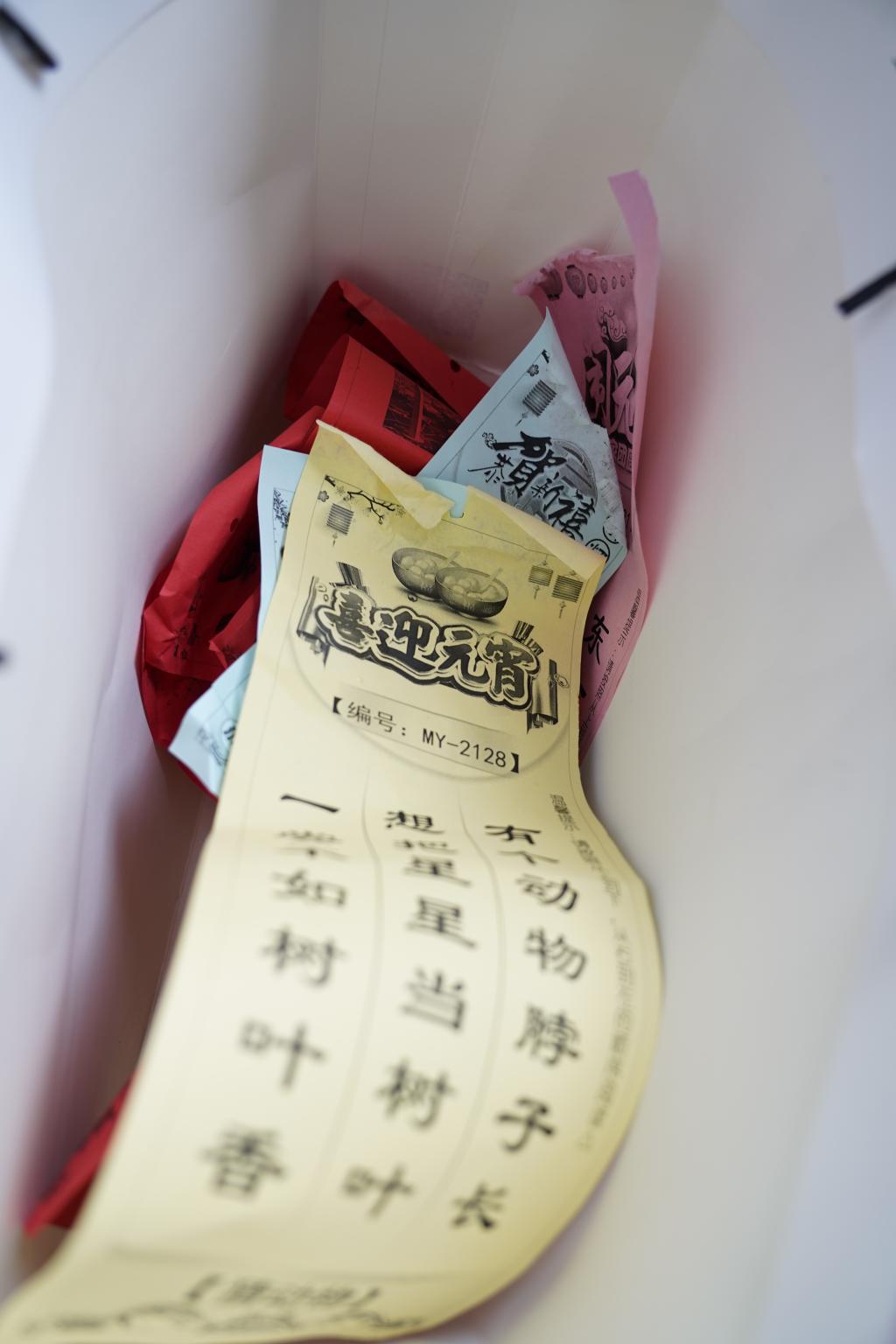 学校为同学们准备了上百条灯谜,包含了字谜、词谜、诗谜等多种类型。在猜灯谜现场,同学们有的独自苦思冥想,有的同伴商量,他们时而热烈讨论、时而喃喃自语、时而欢呼雀跃......