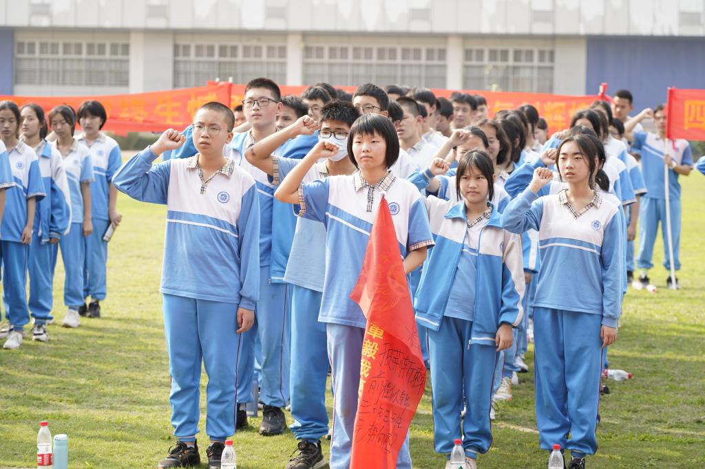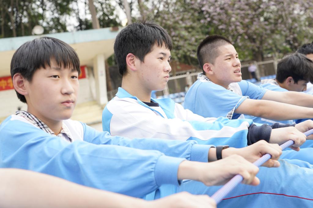 大会进行了毕业班百日冲刺拓展培训。在拓展活动中,各班在教练的指导下有序地组建班级团队,并进行团队展示。随后开展了状元桥和动力圈两个活动项目,同学们团结协作,现场气氛热烈,加油呐喊声此起彼伏。