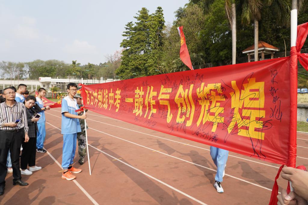 他们鼓励同学们为理想奋力拼搏,加倍珍惜最后的一百天,上好每一节课,做好每一道题,走好每一步路,为中考奋力冲刺,让青春在最后的100天中闪出耀眼的光芒。践行勤奋刻苦、严谨求实的学风,一定不会辜负老师家长的深情厚望。