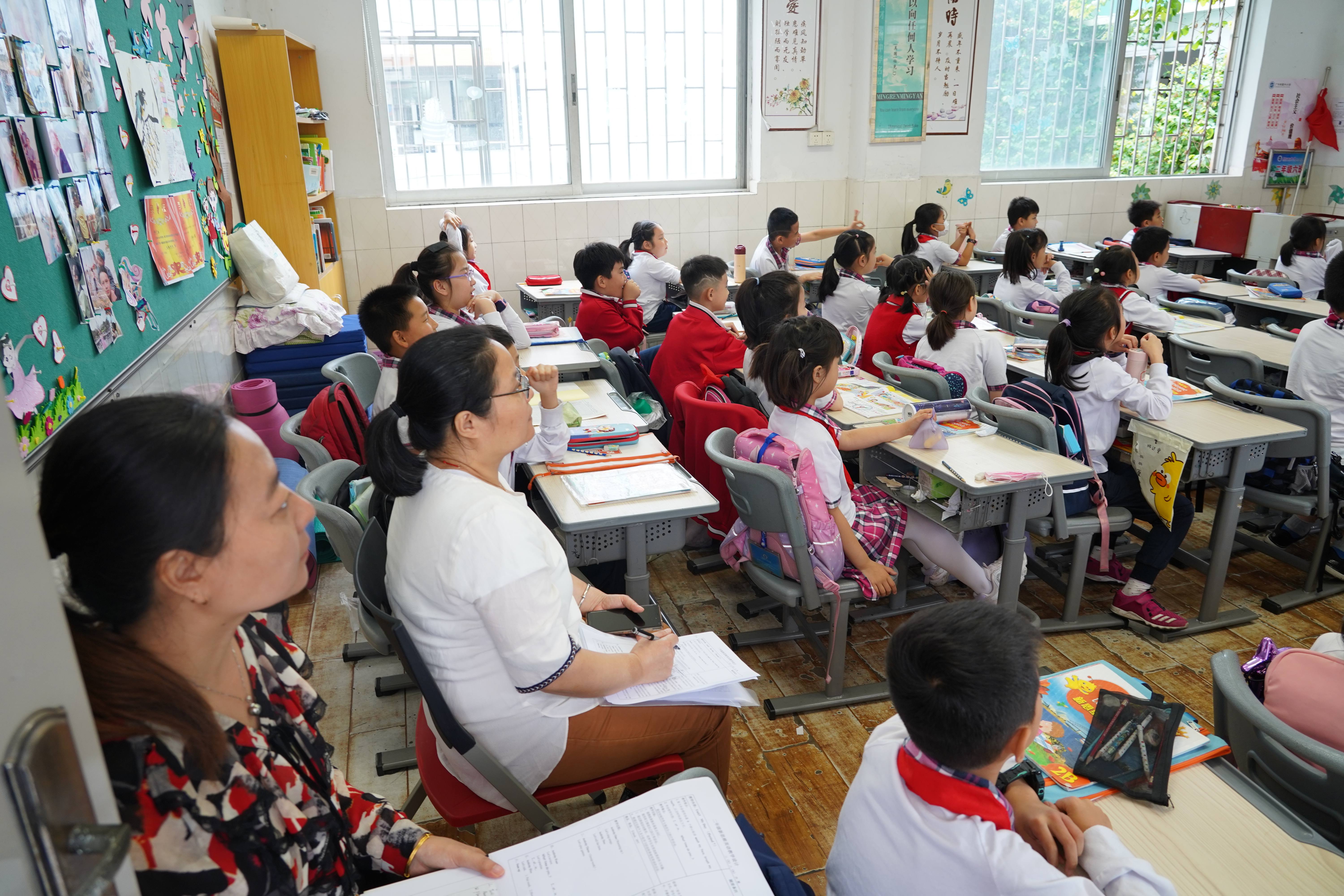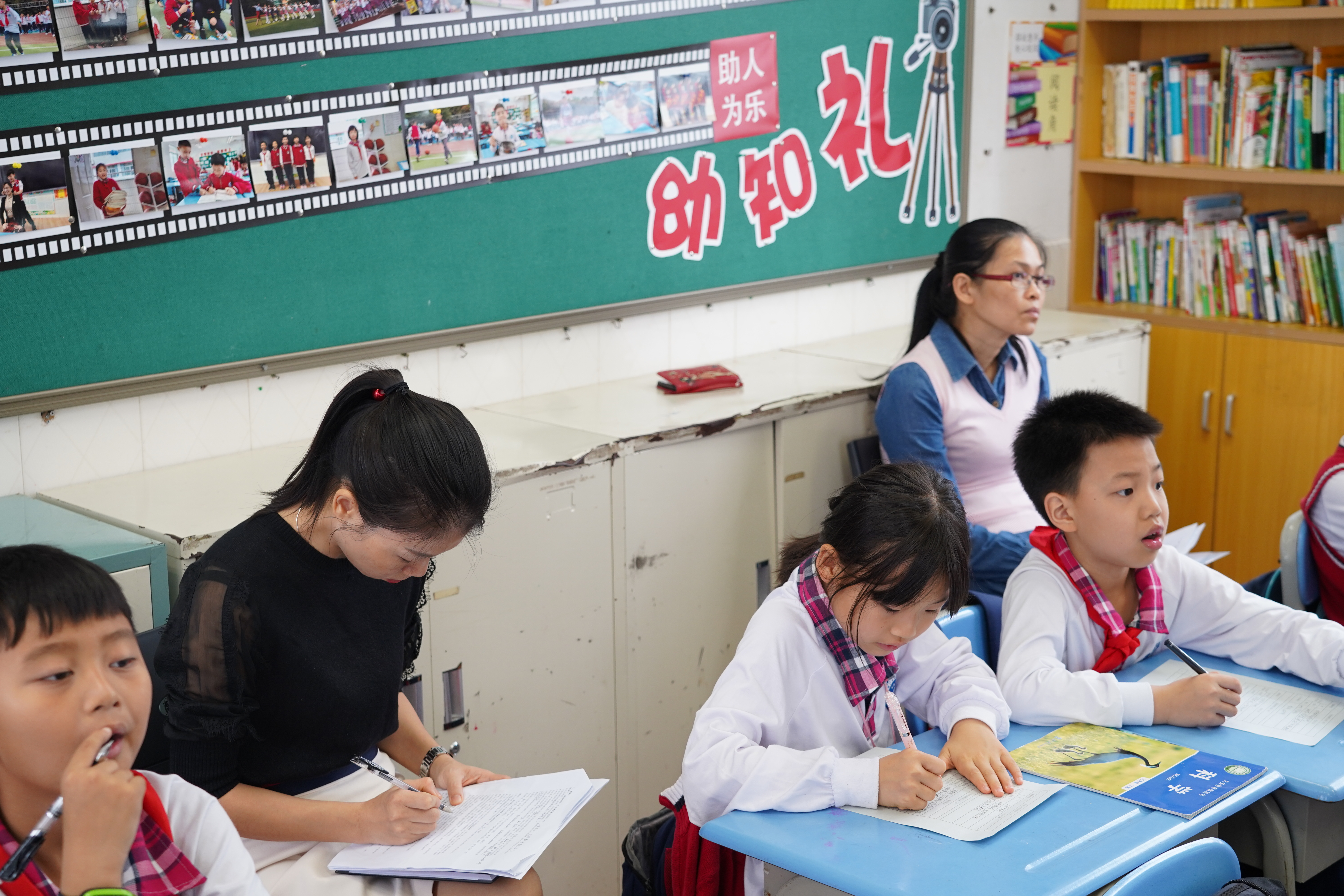 八名督导成员在我校各部门负责人的陪同下,分别在各个年级随机听取语文、数学、英语、音乐、美术、道法、科学、信息、体育等13节课程,并在课下与学生和授课教师亲切交流。