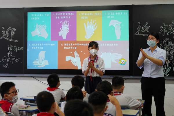 中、小学各班利用线上升旗仪式和返校复课主题班会,为同学们调适居家学习及复课后的心理状态;给同学们科普新型冠状病毒的相关症状,讲解如何科学地预防病毒,如何通过良好的饮食习惯及运动来提高个人免疫力,坚持做好个人防护,做到勤洗手、科学佩戴口罩、讲卫生、少聚集等;同时,在课堂上展示居家学习期间学生的学习、生活照片,分享同学们的家务劳动成果。
