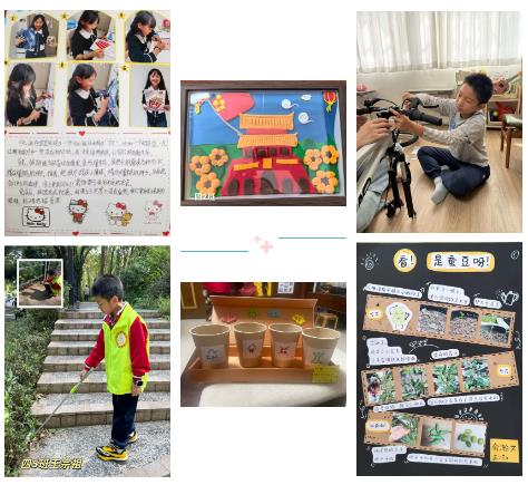 一年级至二年级的萌娃们,在劳动中解锁成长新技能。书包整理如魔法般规整,衣物折叠尽显条理,桌面收纳与餐具摆放暗藏巧思,步骤影像定格专注瞬间;亲手栽种的小盆栽绿意盎然,图文并茂的成长卡记录着生命拔节的惊喜,校园植物认养之旅满是探索乐趣;废旧物在指尖焕发新生,垃圾分类打卡践行环保理念,传统自理技能传承着生活智慧,一本本色彩斑斓的 “劳动成长手册”,绘就出童真满满的劳动图景。