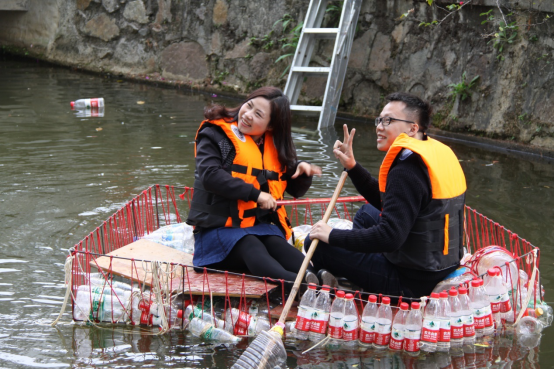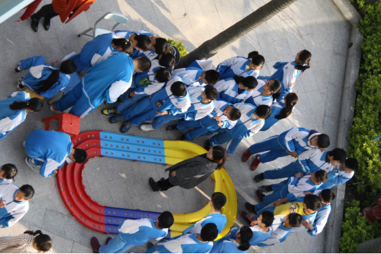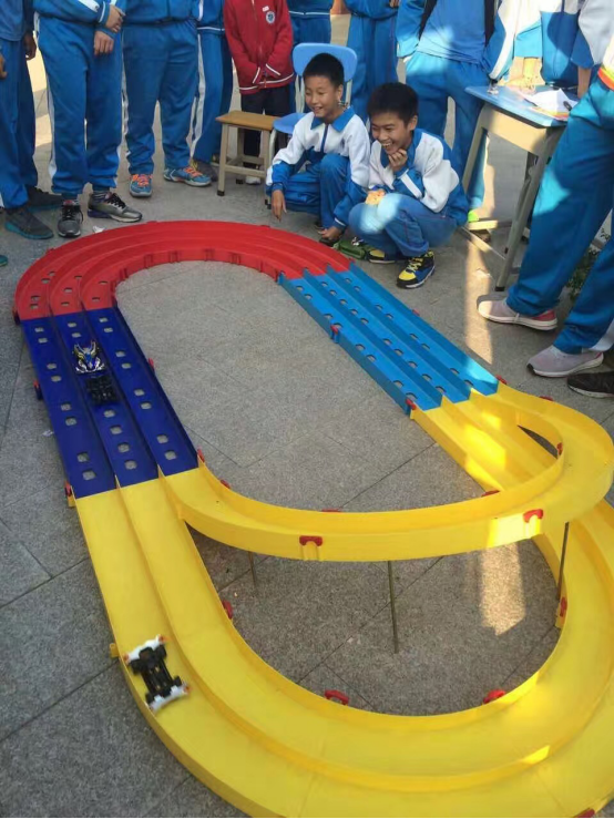 除实验室推出的科技体验,同学们还有以班级或小组为单位做出了许多有意思的产品。初中的同学使用生活中常用可利用废品,以及购买有关的电脑芯片,硬件等组建成一个机器人,并使用软件编写程序上传到芯片里,实现机器人直行和拖地功能。初一3、初一4班以废旧塑料瓶为材料,制作出可载人的大型船体并在水上展示。另外还有化学仿真实验创作技能大赛、金刚石模型制作比赛、生物绘图比赛、水火箭、轨道车等。这场全校师生参与的科技节还展出低年级的DIY科技作品。