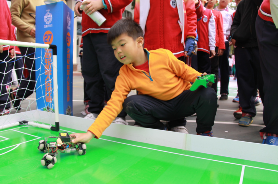 机器人系列吸引了好多同学排队体验。智能机器人通过齿轮转动实现 “手臂”的运动,用编程控制运动方向和速度,这样学生就能用遥控手柄“命令”机器夹娃娃喇。由智慧河机器人实验室带领同学们学生自主研制的全向轮机器人参加了一场有趣的足球赛。这个机器人由驱动板、万向轮、底盘、电机、接收器、开关模块、电压模块组成,可进可退可平移、也可原地360°旋转。据说加个摄像头还可用于复杂地形勘探、外星球勘探及地震现场勘探哦。