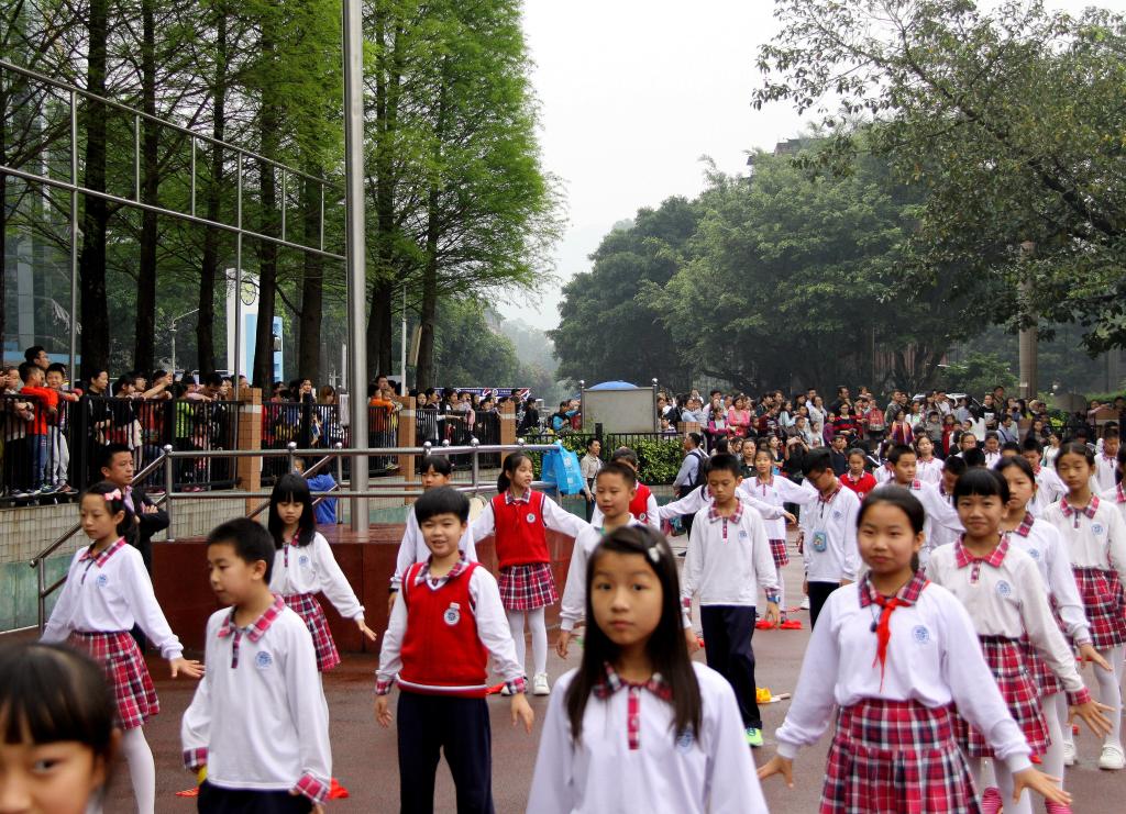 家长们跟随师生们的脚步,来到大操场观看大课间活动