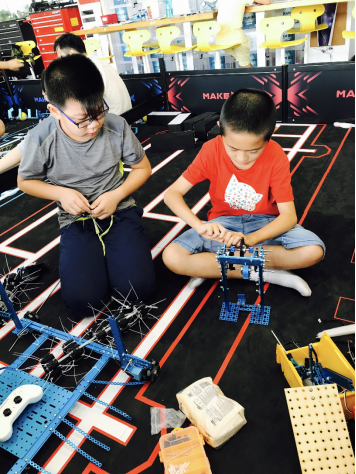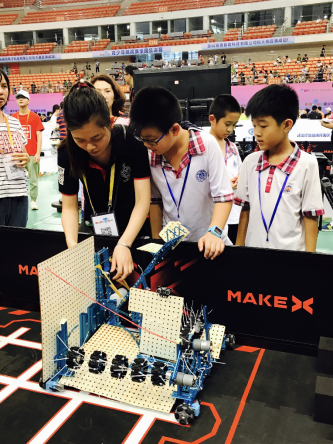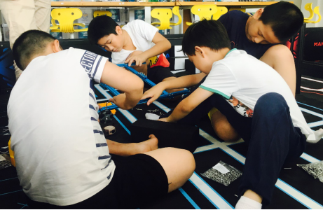登山,不仅仅是为了看山顶的风景,途中的汗水和坚持才让人记忆深刻。毕竟,没有经历过攀登的辛苦,哪有最后的一览众山小?同样,赛场上的激动人心也不是一蹴而就。除了赛前的检查机器和战术讨论,平时的培训功劳更大。两个战队一起上课,一起讨论,一起创新,一起解决问题,互相学习与取经,踏踏实实跟随教练一步一个脚印冲到最后。