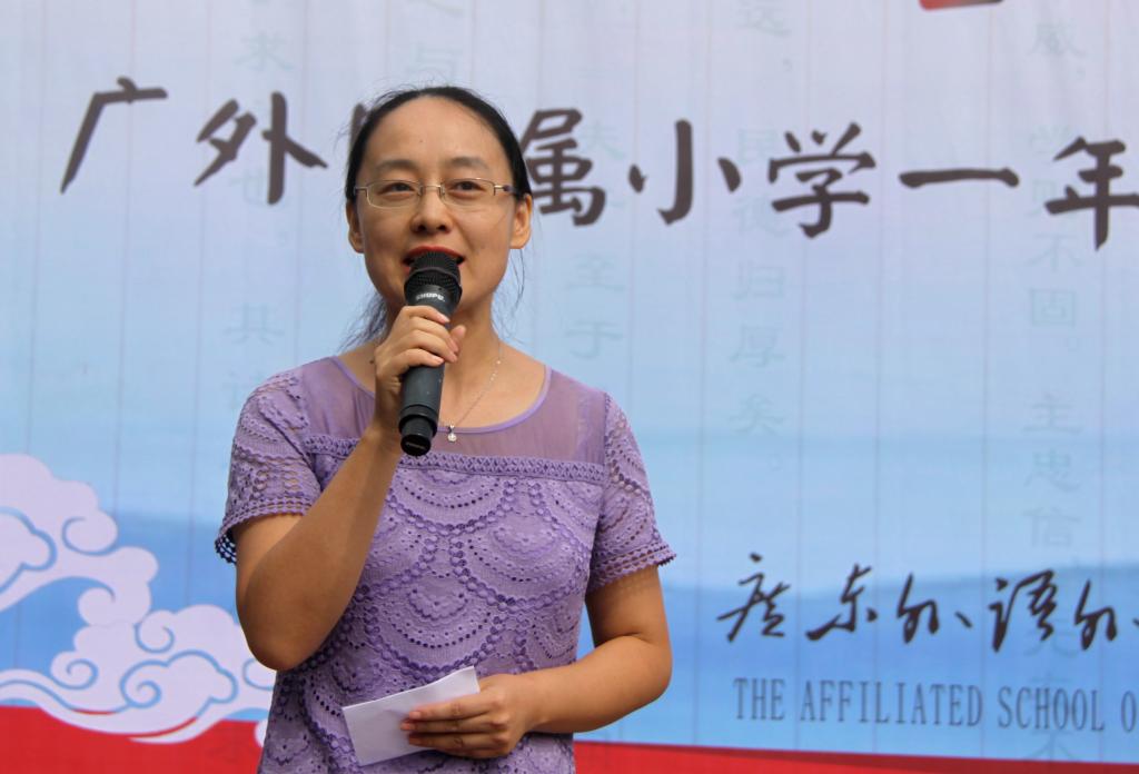 家长代表贺静上台带领家长们宣誓