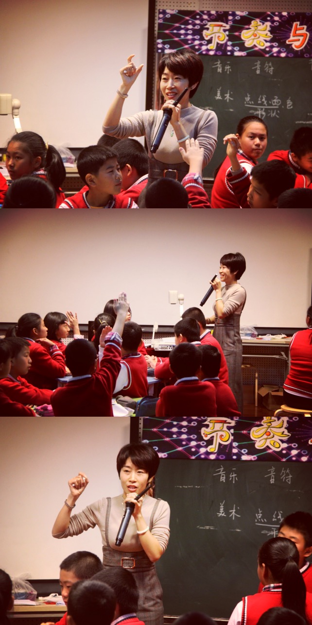 吴芳老师的舞蹈课《节奏与生活》,用舞蹈动作,肢体造型来表现和传达自己对于节奏的感受,让孩子们热爱生活,享受其乐趣,将课堂教学推向高潮。