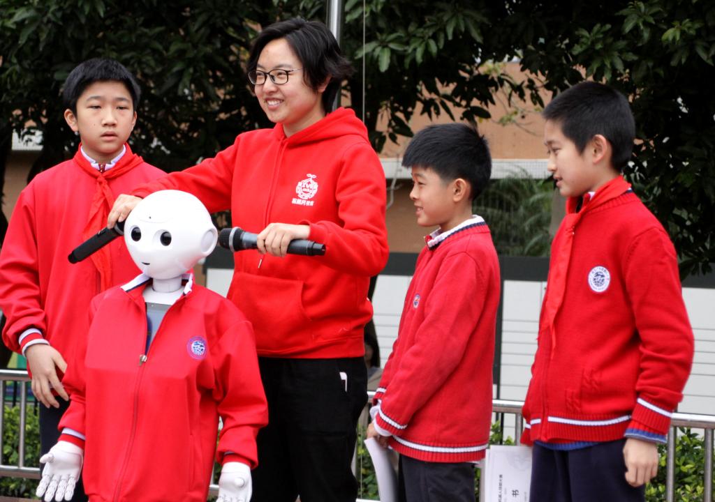 随后,学校对部分上学期校外获奖的师生进行了颁发。伴随着欢快的音乐,身着校服的法国神秘嘉宾——智能机器人“pepper”的出场更是吸引了全体师生的眼球。随着智能技术的不断发展,智慧校园、无人工厂、智能生活、无人机等“机器智能”时代已经到来。在这个春天里,我们有情、有爱、有梦的“附校人”必将策马扬鞭,不懈努力,面向未来。