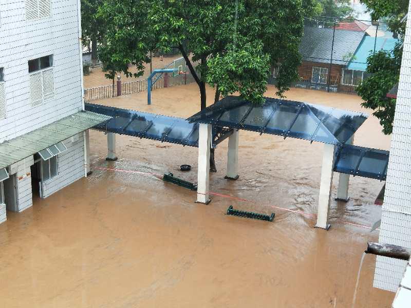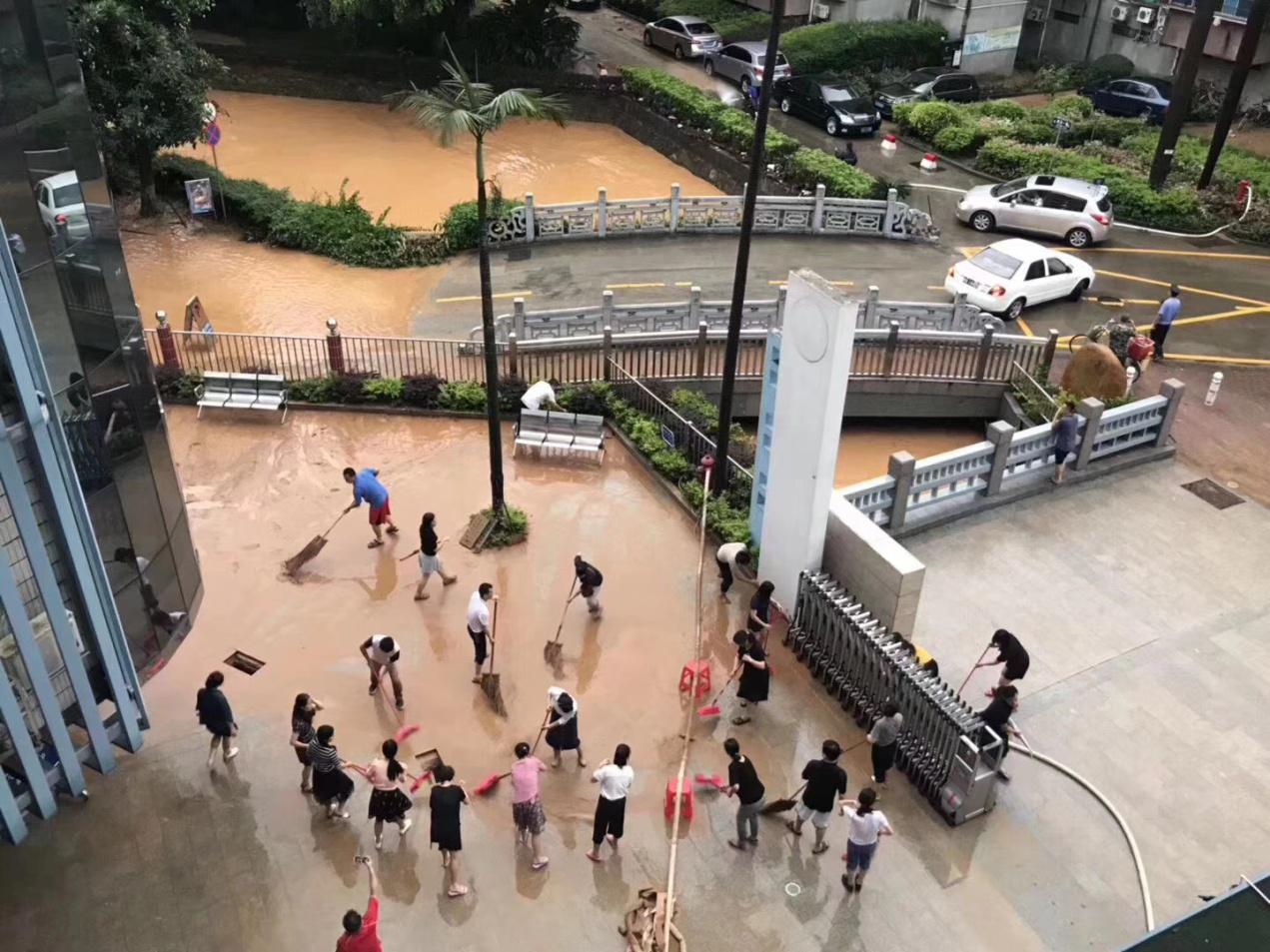 “学生安全高于一切”,洪水过后,全校教职员工坚守岗位,迅速开展学生撤离和自救清理工作,确保每位学生都安全到家才离开。