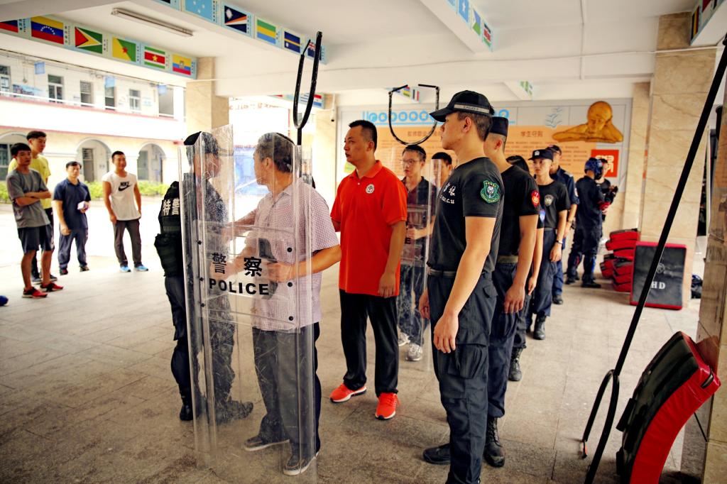 丁勇教授带领警官队伍为我校护卫队授课