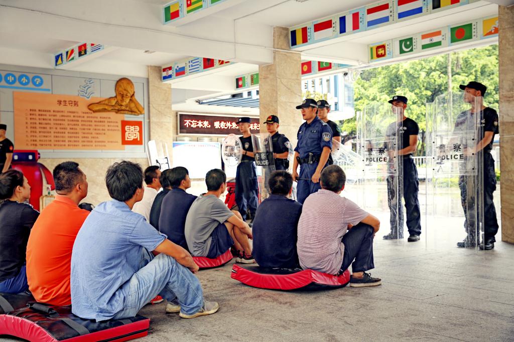 本网讯 校园遭遇突发暴力事件,同学们应该如何自我保护?学校应该怎样应对避险?为进一步强化校园安全意识,9月1日,来自广东警官学院战术系的黄印、丁勇教授及警察战术协会的教官们为全体教职工上了一节校园防砍杀及应急处置培训课程。