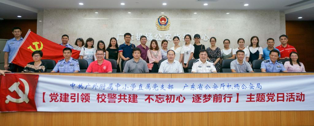广东外语外贸大学党委常委、副校长阳爱民以普通党员的身份参加了主题党日活动,他在发言中指出,广外附属中小学直属党支部在加强党建基本理论学习和学习贯彻吸进习近平总书记系列重要讲话精神,开展“两学一做”学习教育,落实“三会一课”,以党建带团建上加强了组织建设,党建工作在大家的努下有了进步。但是党建工作基础薄弱,重业务轻党建思想不同程度的存在。今天参加支部主题党日活动非常高兴,作为一名共产党员,我们不仅仅要在身份上入党,组织上入党,更重要的是要在思想上入党,在政治上入党,在行为上入党。附属中小学要把学习贯彻习近平总书记重要指示精神作为当前和今后一个时期的重要政治任务,采取主题党日活动等多种形式认真学习、深入研讨,学深学透、融会贯通,切实把思想自觉转化为行动自觉,推动基层党组织工作创新,提升基层党建工作科学化水平。他认为,主题党日活动是新时代加强党的建设的一个重要举措,不仅要坚持下去,还要不断深化。本次联合党日活动形式新颖、内容丰富,是党支部活动的又一次创新。感谢广东省公安厅机场公安局提供这个互学共进,联合打造党建交流、党员学习的平台。