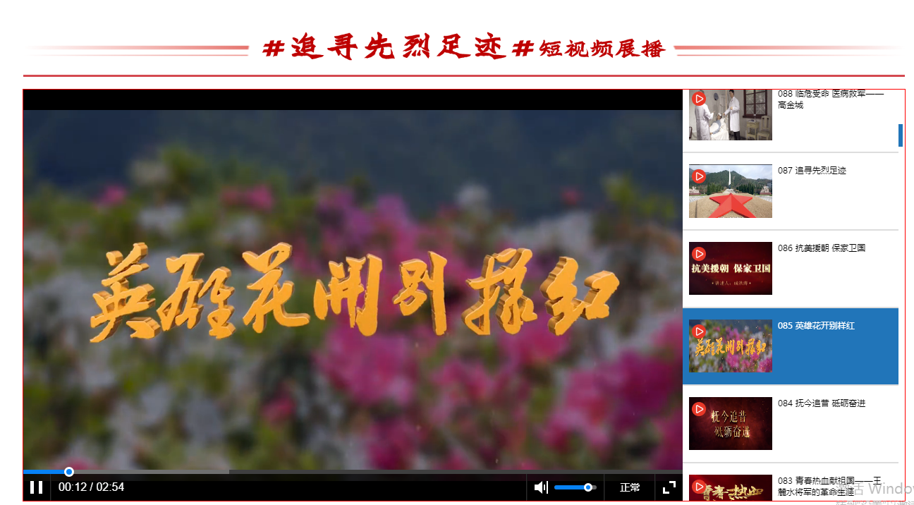 “英雄花开别样红”、“燃烧的丰碑”、“抗美援朝 保家卫国”、”不屈的意志 不朽的忠魂”、“信仰的接力”等短视频内容丰富、意义深远,党员们沿着先烈的足迹,追寻红色记忆,进一步重温峥嵘岁月,从党史中汲取初心力量。