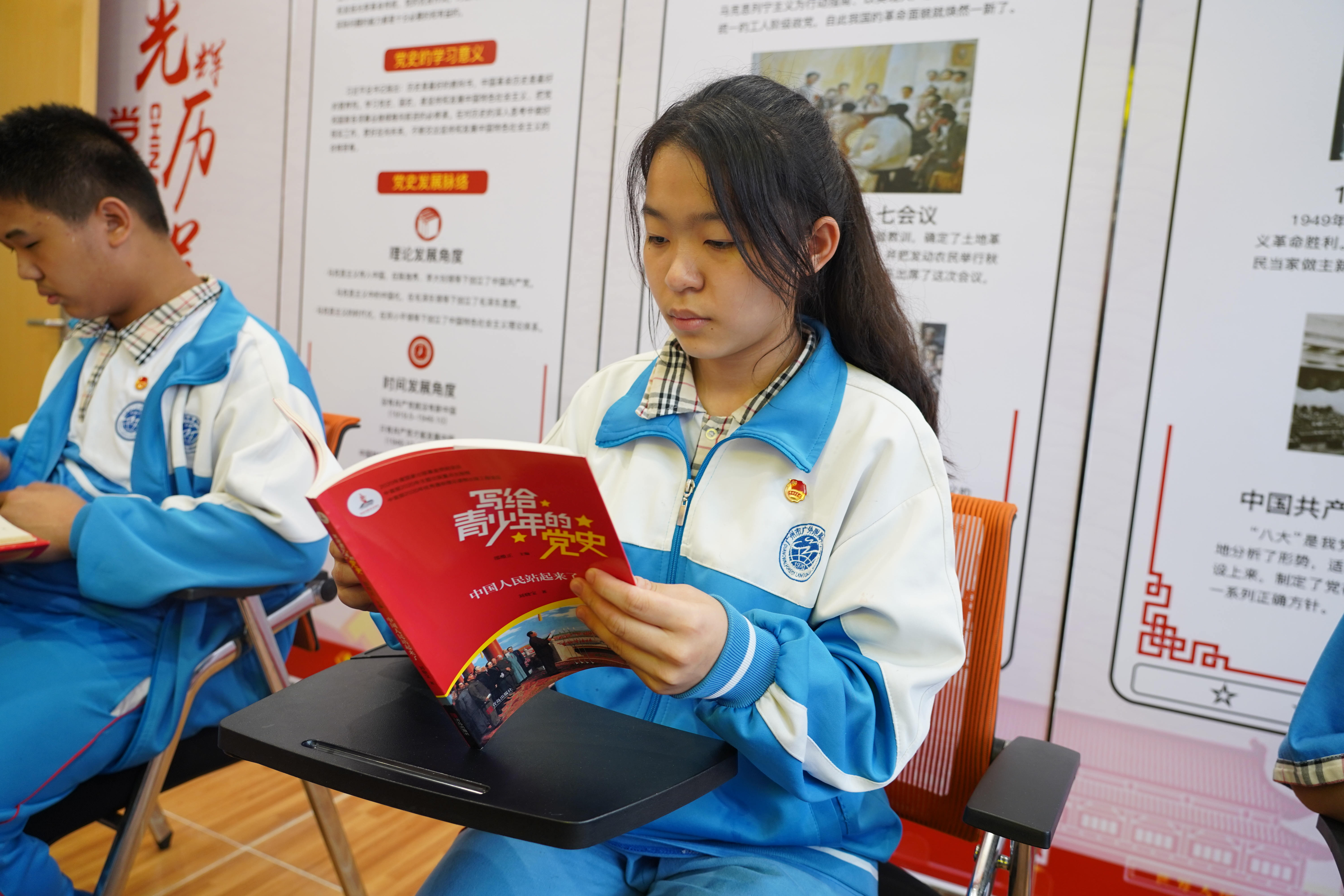 新购图书包括《小英雄雨来》、《闪闪的红星》、《小兵张嘎》等适合小学生看的红色经典书籍,让孩子们重温红色经典。孩子们通过阅读儿童抗日革命英雄的故事,传承革命精神,弘扬爱国主义教育,放飞人生理想。适合初中生的则有《写给青少年的党史》系列,6卷既独立成书,连贯起来又构成一个整体,能够系统地反映中国共产党历史的概貌。这套丛书在内容编排上,每个问题后设有“名言金句”“读党史长智慧”栏目,可以帮助中学生们更好地掌握主要内容和精髓启示,引发思考,从中受益。
