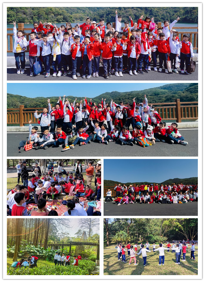各个年级的同学在老师的带领下排着整齐的队伍走进白云山,一路上欢歌笑语,笑声朗朗。黄婆洞水库旁,同学们拍照留影,留下春天的脚步。与明珠楼隔湖相望,孩子们在宽阔的草坪上尽情奔跑,品味春天的诗歌,享受春天的诗意。