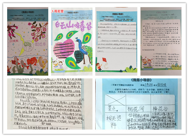 白云山实践活动锻炼体魄,拓宽视野,同学们在自由、轻松的环境中,感受着人与自然的和谐;在老师们的带领下,体会到悠悠白云山的深厚底蕴,感受大自然赠予岭南的宝贵财富,领略白云山作为广州精神象征的风采。实践活动结束后各班认真完成了实践作业,一年级的花瓣树叶书签,二年级我是小导游美景绘图,中高年级的实践探究报告,有内容、有深度、有质量。