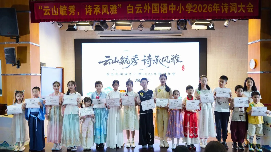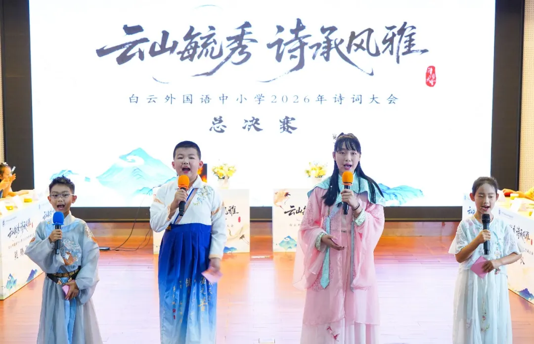 以赛为媒,以诗育人。此次诗词大会不仅激发了学生热爱经典、诵读诗词的热情,更让中华优秀传统文化在校园落地生根。未来,白云外国语中小学将继续深耕经典文化教育,让诗词书香浸润校园,让风雅气韵伴随每一位学子向阳成长。