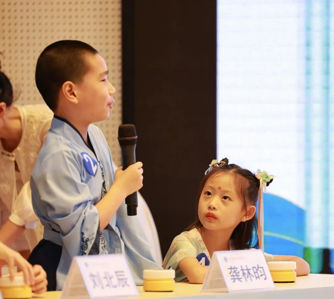 胸藏文墨怀若谷——“诗海夺魁”个人抢答环节,紧扣诗词典故、文学常识与意象辨析,题目精妙、考验十足。小选手们沉着应战、从容不迫,对答如流、妙语连珠,流畅作答赢得全场阵阵掌声,尽显少年博学才情。