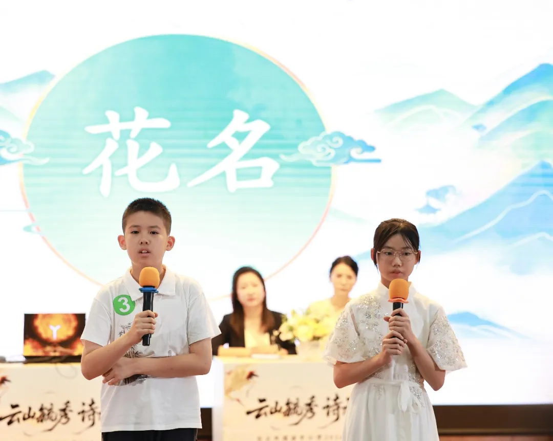 飞花逐梦诵经典——作为压轴大戏,飞花令巅峰对决将全场气氛推向顶点。大赛现场抽取飞花令令字,小学组与初中组选手同台竞技,才思敏捷、你来我往,千古佳句信手拈来,字字珠玑、句句传情,为全场献上一场酣畅淋漓、扣人心弦的诗词对决。
