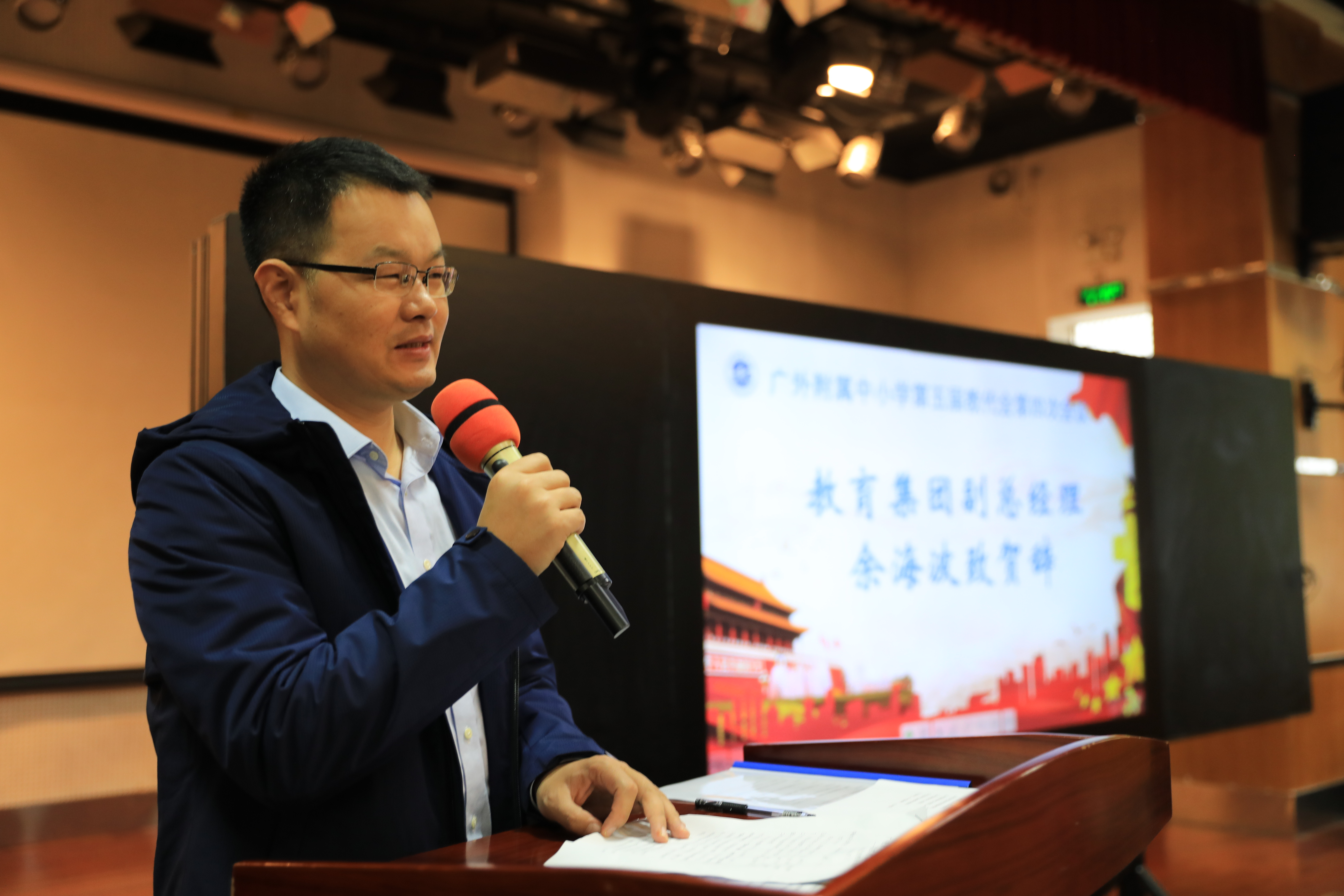 教育集团副总经理余海波在致贺词中代表教育集团向大会的顺利召开表示祝贺,对学校近年来的办学成果给予充分肯定。他指出,今年是附属中小学建校50周年,50年来学校不断地发展,逐步成为白云区乃至广州市一张闪亮的教育名片。这得益于学校有一支政治素质高、有凝聚力和战斗力的学校管理团队以及众多无私奉献、爱岗敬业的教职员工。他希望各位代表增强大局意识,带头担当作为。同时要以此次会议为新起点,进一步明确目标、坚定信心,凝聚智慧、开拓进取,为实现学校下一个50年发展宏伟目标积极贡献力量。
