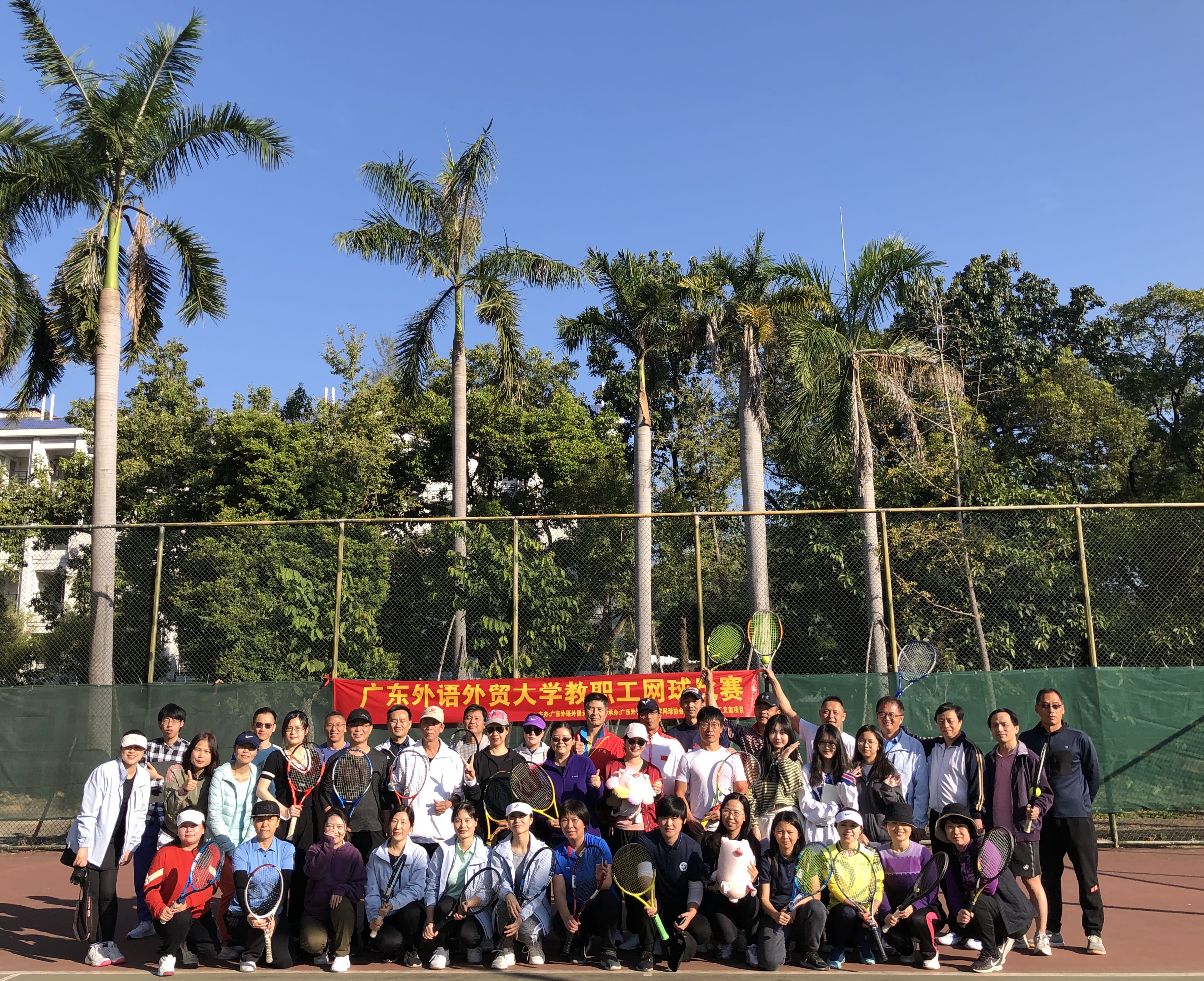 本网讯 11月28日,2021年广外教职工网球比赛在网球场举行。15支参赛队伍,近100名运动员、网球爱好者参加,参赛人数创历年之最。经过激烈的比拼,我校再次摘得团体亚军。