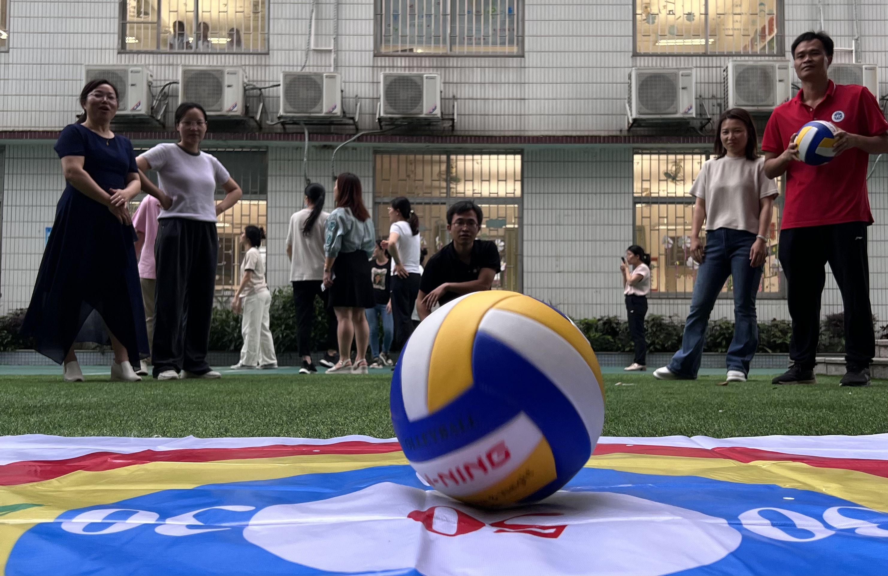本网讯 5月10至6月6日,学校工会组织了教职工趣味气排球团体比赛。比赛选择在放学以后进行,期间各队准备充分,赛事扣人心弦,最终六年级团队勇夺冠军。