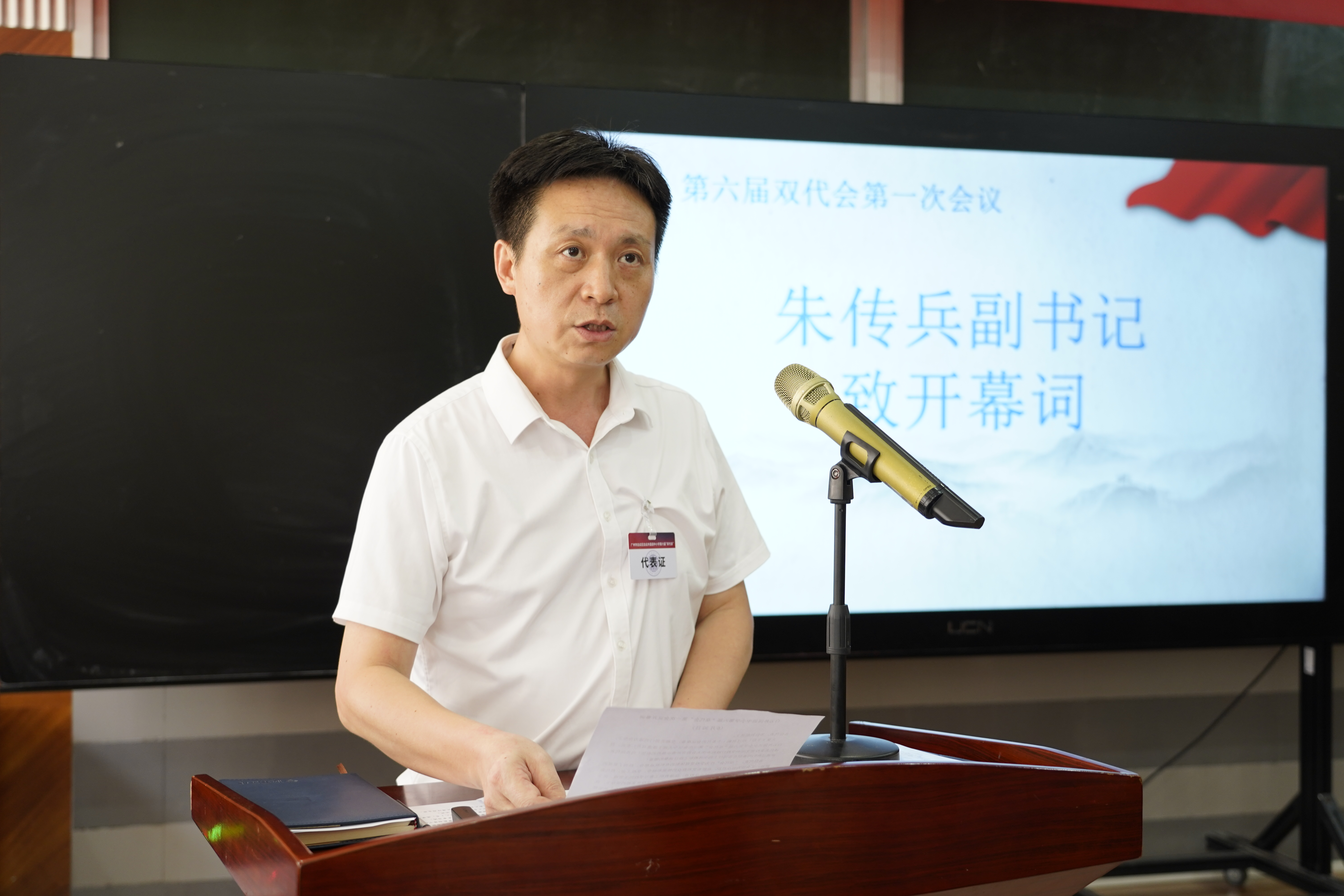 朱传兵副书记致开幕词。他希望全体代表要不负重托,集思广益,运用集体的智慧和力量把这次大会开成一次民主团结、求实奋进、开拓创新的大会。