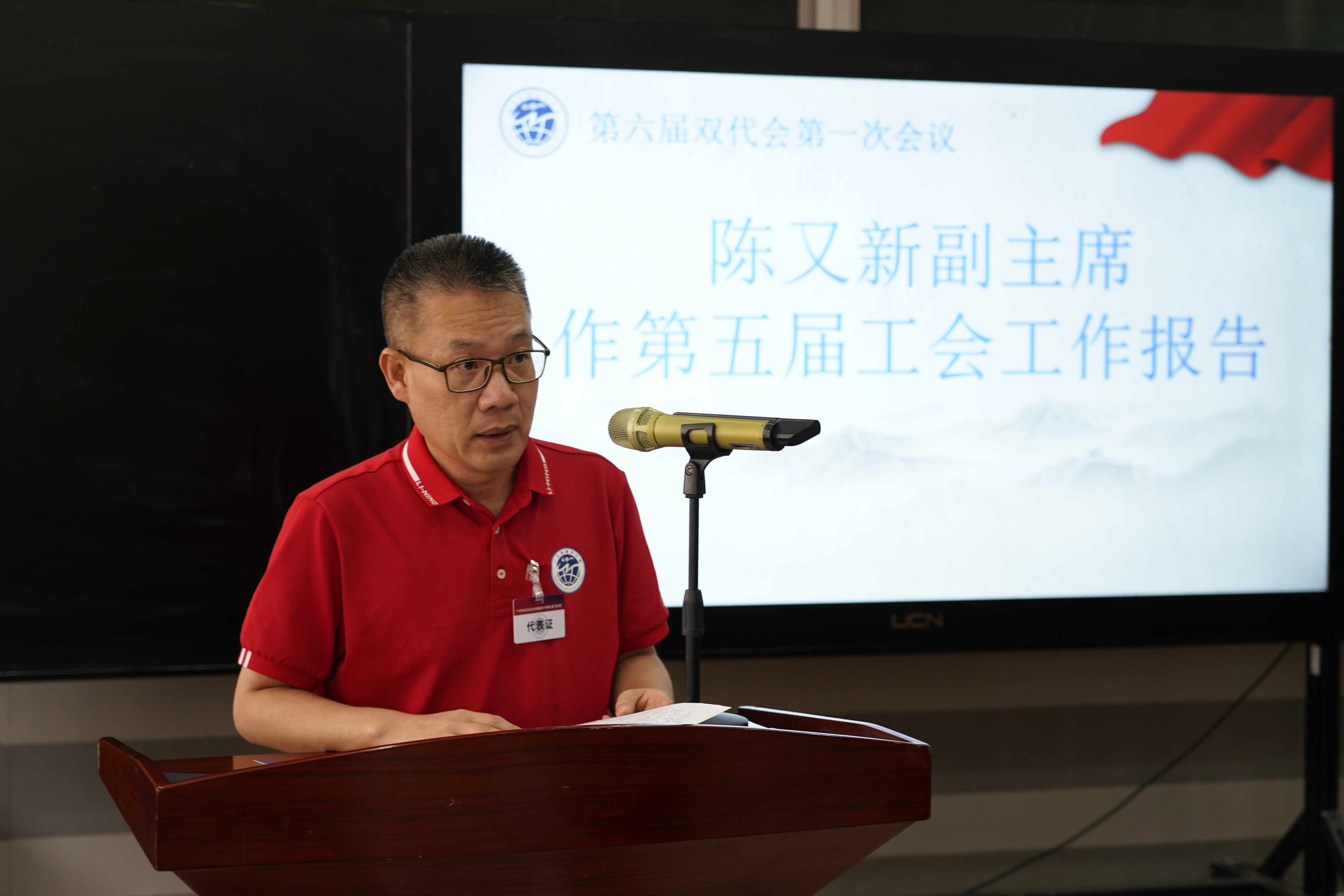 陈又新副主席作第五届工会工作报告。报告主要汇报了第六届“双代会”第一次会议的筹备工作情况,以及总结了第五届工会在职工思想引领、为职工办好事实事、提高自身工作水平、依法严格管理工会经费等方面的工作,反思工作中存在的问题和不足,提出对新一届工会的工作建议。
