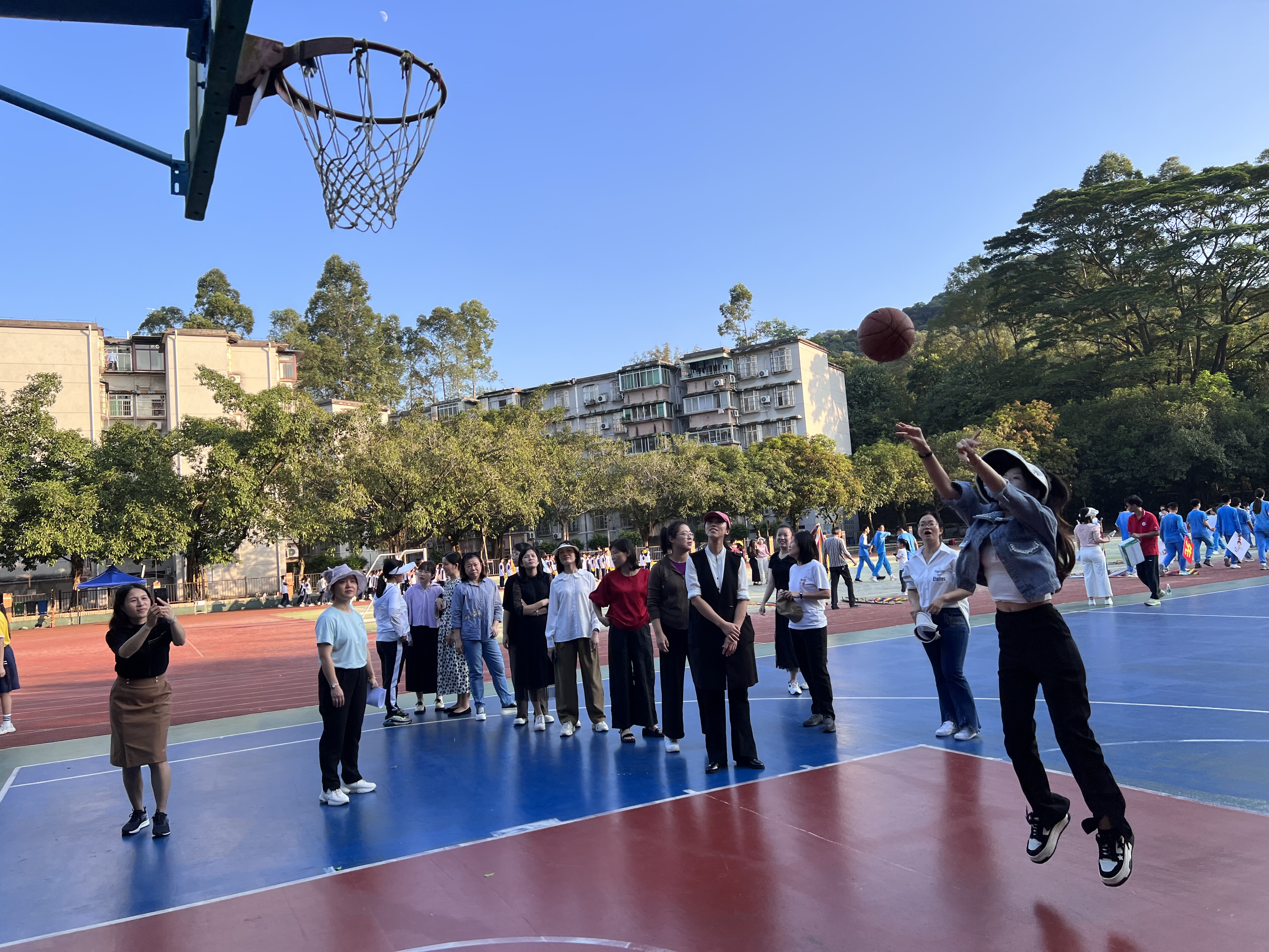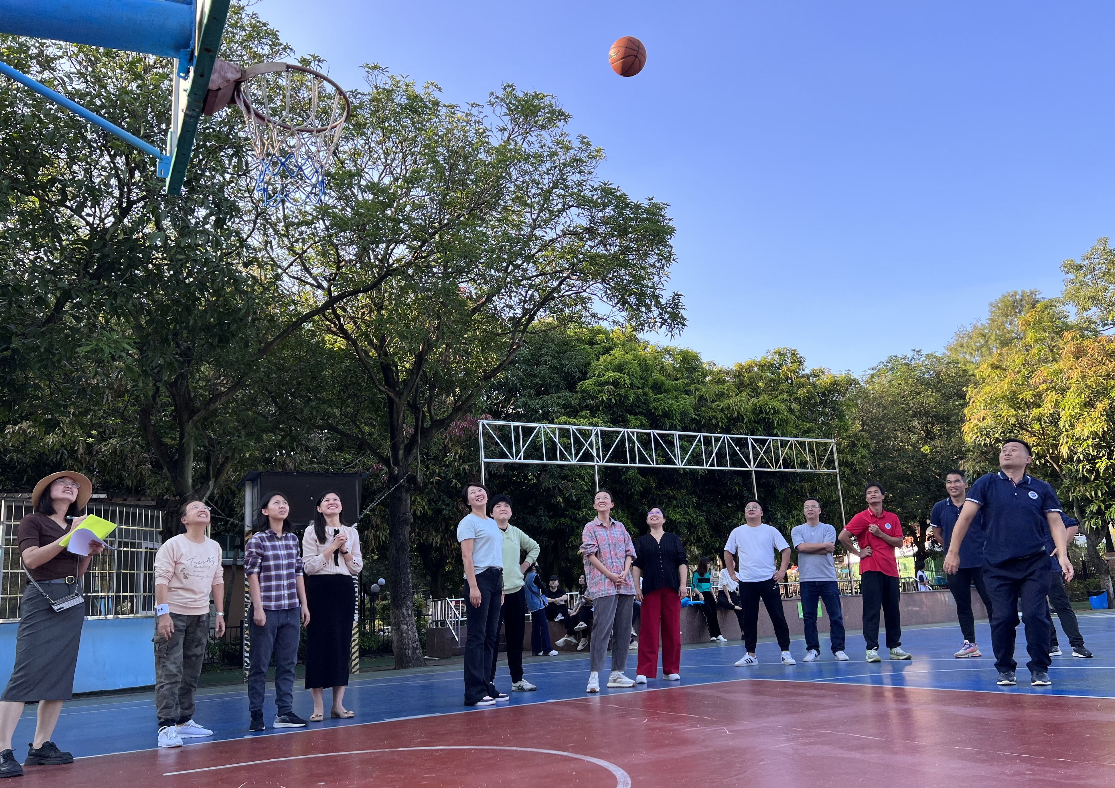 趣味运动会设置“定点投篮”“同舟共济”“无敌风火轮”等3个项目,本次活动将“趣味”融于“团队”中,教职工以年级为单位共组成10支参赛队伍,展开了激烈的角逐。比赛场面热烈、激动人心,营造出一个其乐融融、轻松和谐的校园氛围,留下了一幕幕精彩的画面。