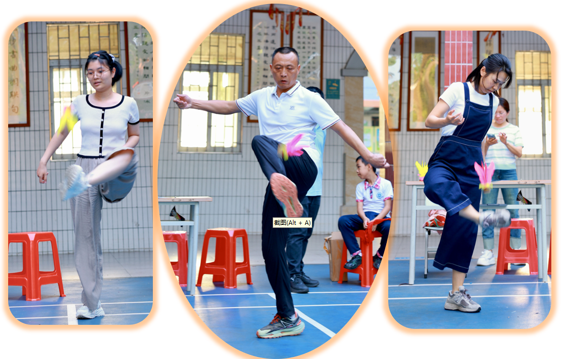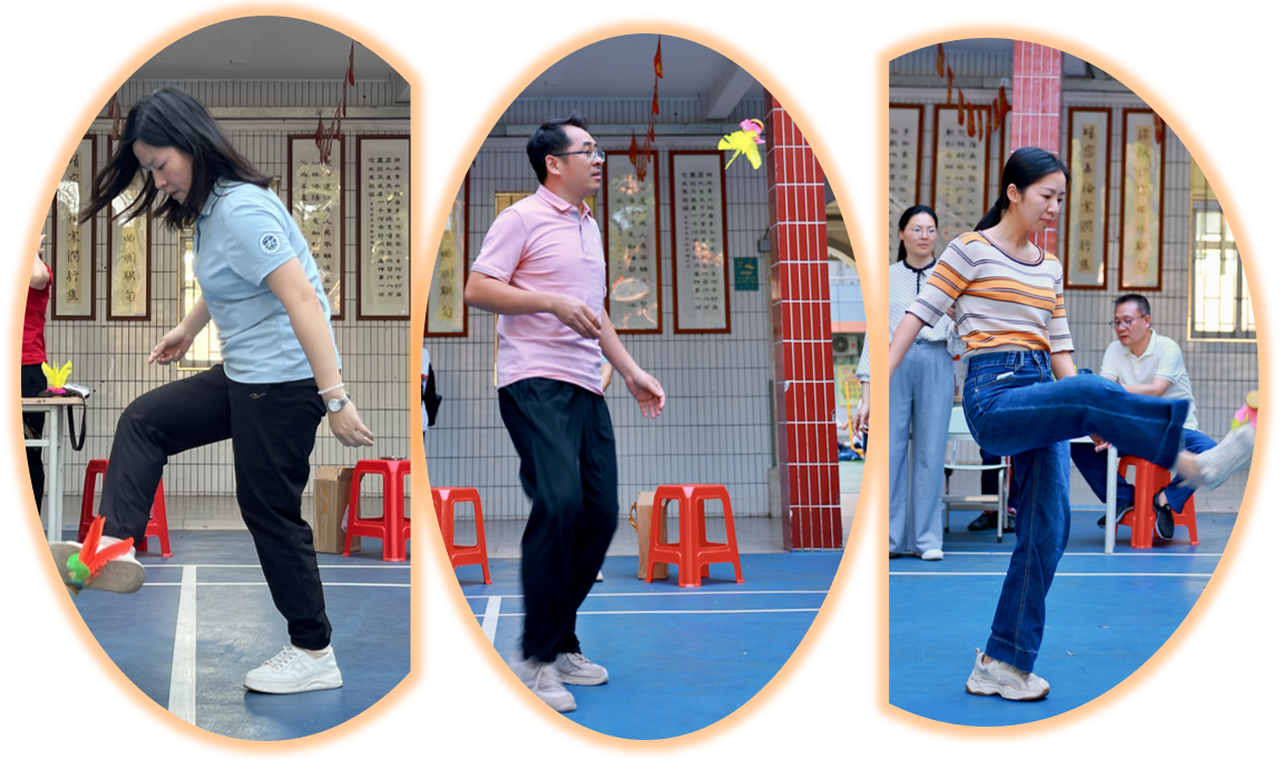 赛事分三阶段:清明之后,各年级组悄然蓄力。庑廊庭院间,毽影翩跹,课间操时分常见教工们切磋“足上功夫”。一年级组罗燕维老师笑言:“此技可比批改作业,眼明如炬,脚快如电,心细若丝,三者缺一不可!”