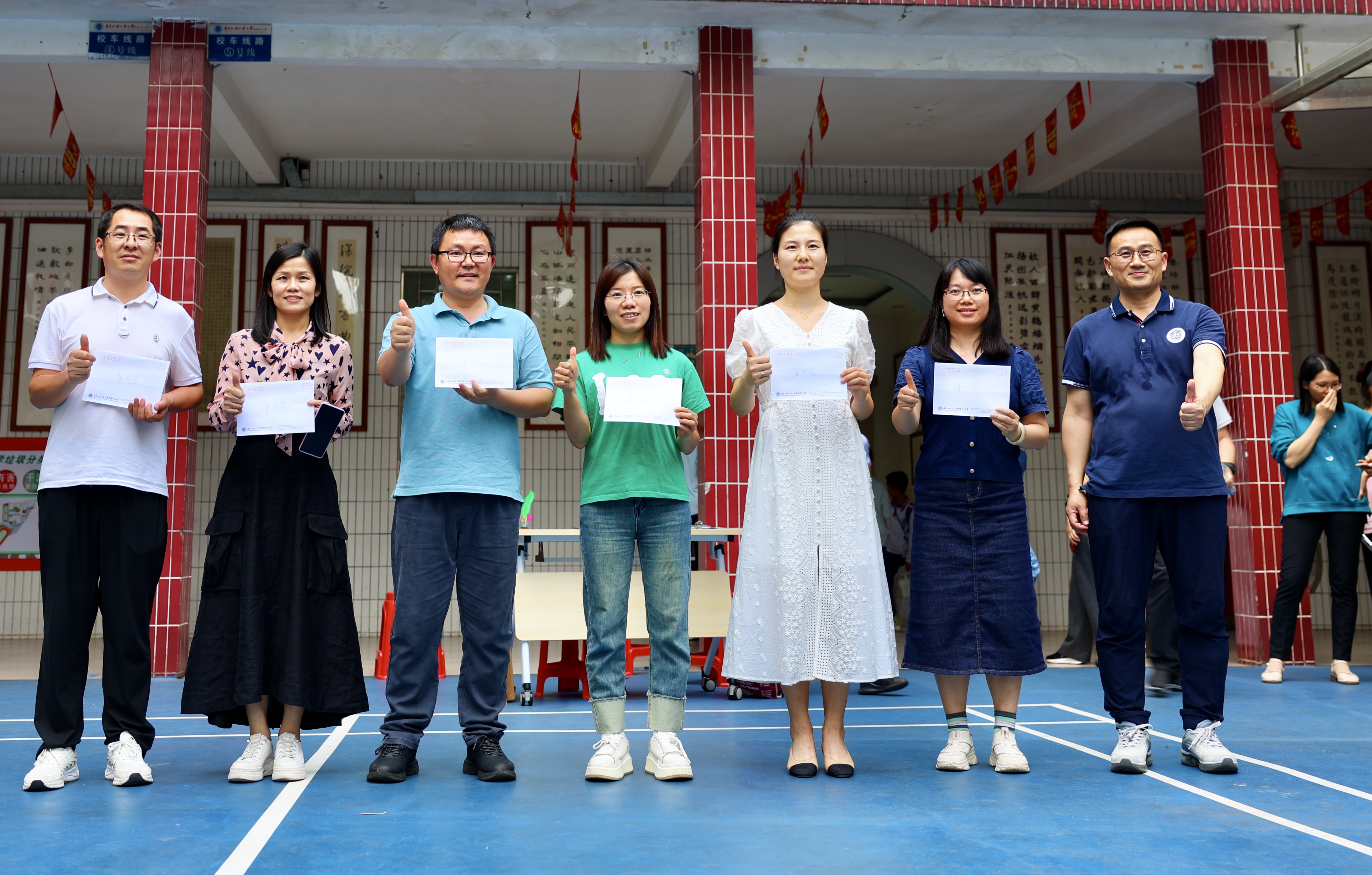 初赛日,各组斗智斗勇,积分厮杀;决赛时,羽毽如流星贯日,积分榜风云迭变。行政后勤组麦丹妹、谢元建、李小丽老师足下生风,毽球似灵蝶穿花,终以223记垫球摘得桂冠。六年级、七年级分列亚季军,九年级、二年级、八年级紧随其后。最惊艳者当属一年级罗燕维老师,足尖轻点如蜻蜓点水,一气呵成81记垫球,斩获“得分王”殊荣,华为手环加身,笑颜映夕阳。