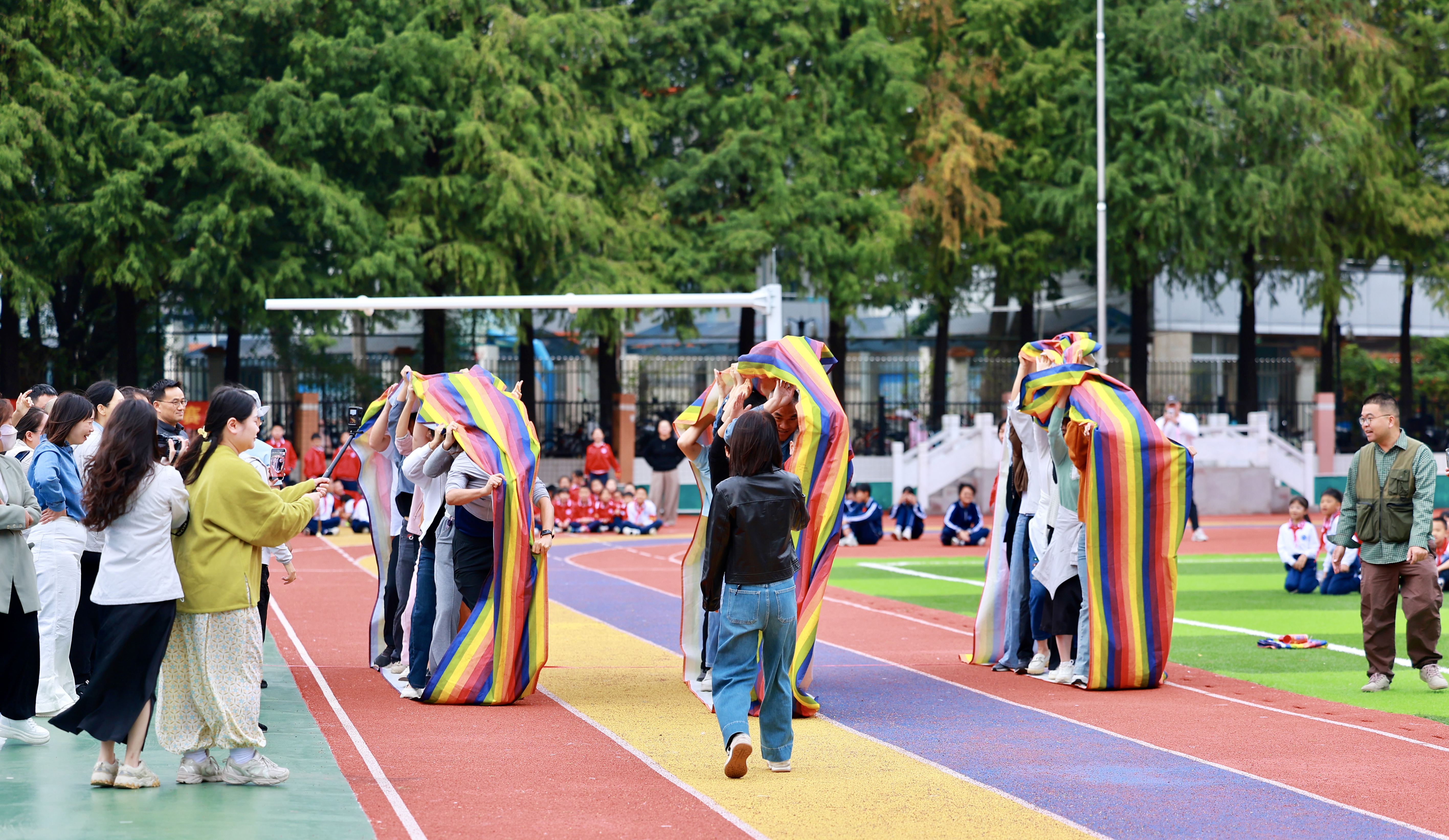 为确保赛事有序进行,工会组织专业裁判团队:8位实习老师分为四组,分别负责四条赛道的计时工作;杨穗、刘姣等7位监督员担任“鹰眼拍客”,全程摄像记录,确保规则执行到位——任何违规行为将导致成绩清零,保证比赛公平公正。