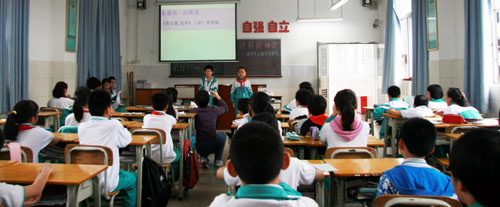 班会课上,同学们以不同形式展现了我国诗歌的精华。全体女同学齐声朗诵了唐朝张若虚的《春江花月夜》,声情并茂的诵读,仿佛把人们带入了一幅淡雅的中国水墨画,亲身感受到了春江花月夜的清幽美。全班同学共同诵读了《念奴娇•赤壁怀古》。满怀激情的朗诵,把人们又重新带回到了三国时期的战场。林卓桦、吴思同学朗诵的儿童诗《我喜欢你,狐狸》,充分表达出了诗歌中作者对狐狸的喜爱与赞美之情。