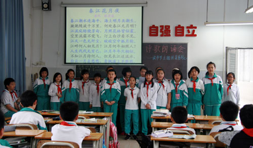 同学们感情丰富的朗诵感染着在座的每一位观众。他们的声音时而如洪钟铿锵有力;时而如和风细雨悠远绵长;时而如小桥流水动人心弦,时而如飒爽英姿潇洒飘逸,把我们带进了诗的意境,带进了异彩纷呈的诗歌世界。(德育处)