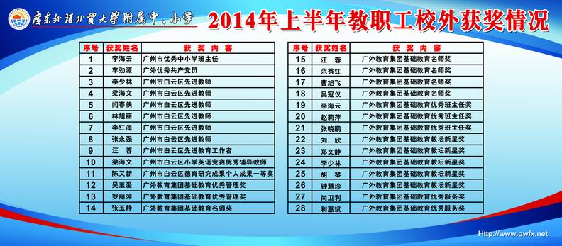 荣誉背后是汗水。记录荣誉是为传承和发展,超越和创新永远是广外附校人的新起跑线。忘不了各级领导、各届人士无微不至的关怀与支持,更忘不了我们多年的奋斗与拼搏。我们将继续坚持“生本教育”,追求有效管理,全面提升学校办学质量,继往开来,与时俱进,立足广州,面向全国,把学校办成全国一流的名校。