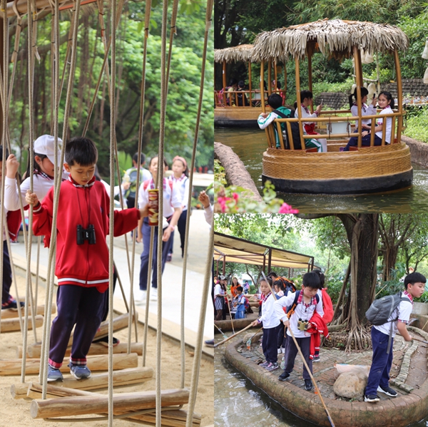 除了深入感受岭南文化,印象园内的游乐场也成了孩子们放松自我,与同学们尽情嬉戏的场所。除了平日里喜欢的走绳索桥,坐漂流船,鱼池内的小金鱼,成了孩子们的最爱,大家都迫不及待地要与他们来个亲密接触。有的同学实在按捺不住,临走前还不忘带几条回家,以满足自己对于小动物的好奇。