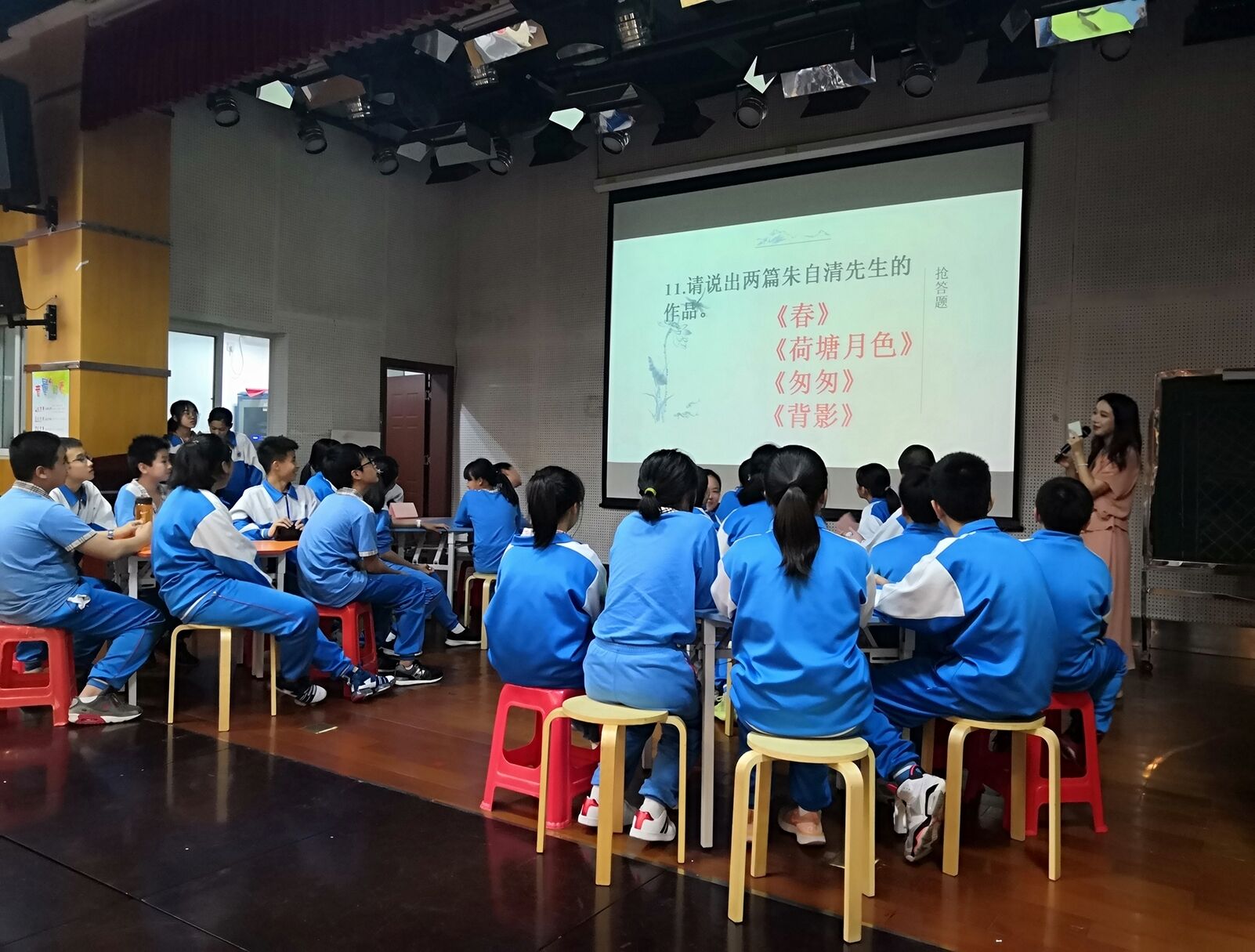 本网讯 2019年4月2日下午4点30分,广外附中初一年级在校礼堂举办了读书节文学知识争霸赛,初一全体师生参与了此次活动。