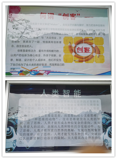 此次校园文化建设有两大亮点。一是每个班级的室内文化建设。它们根据每个班级不同的特点由班主任老师设计,班级墙壁都贴上了不同的名人名言,班级门口也展示了各具特色的班牌,体现出了每个班级不同的风格。二是学校的文化走廊。学校每个楼层的走廊都贴上了不同的励志名言还有高科技知识介绍等内容,极大地浓郁了学校的文化气息,展示了学校的个性魅力和办学特色。