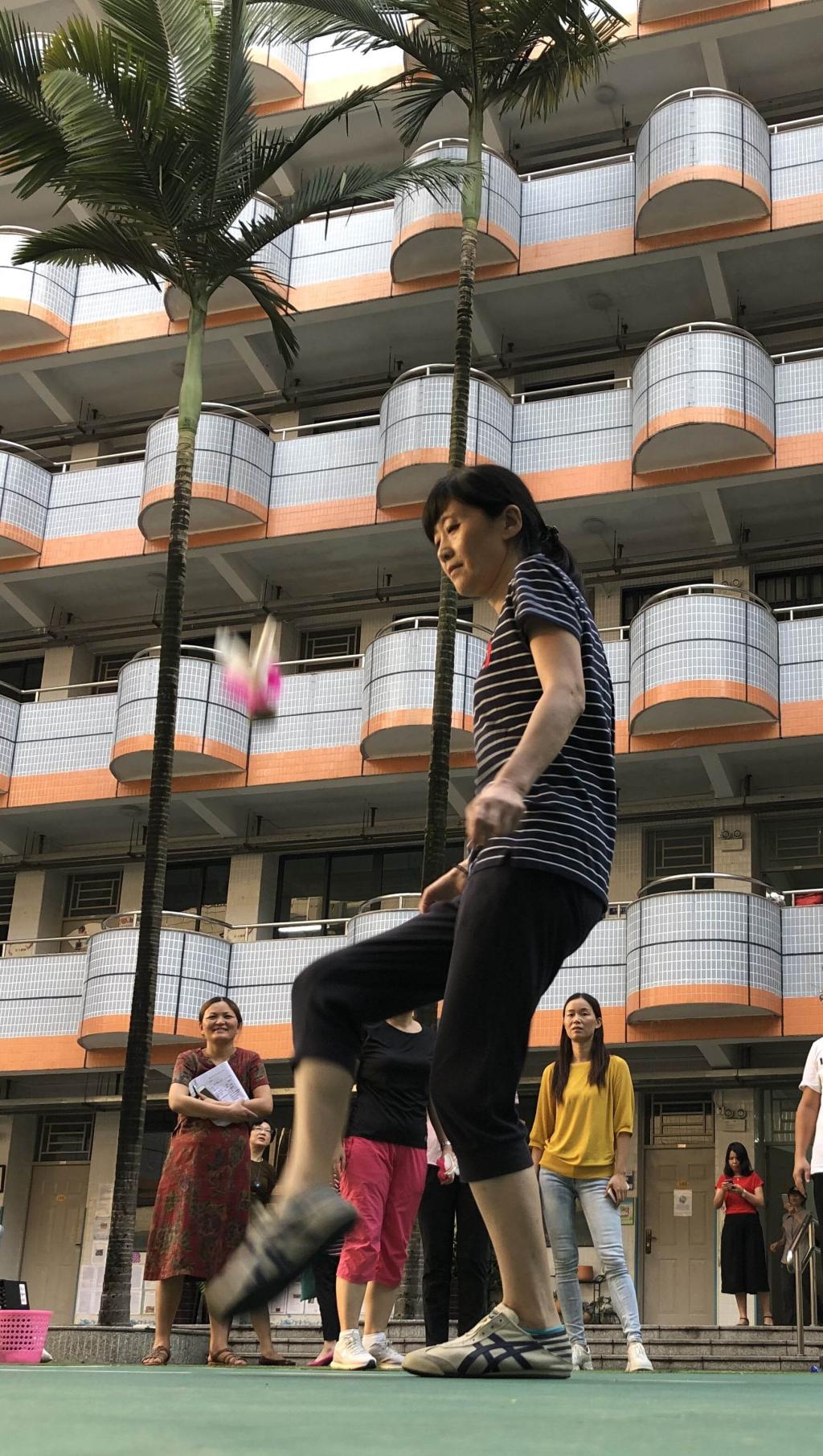 一踹一搓,双脚起落间,原本轻灵优美的毽球,在空中划出一道道让人目不暇接的弧线。两强相遇勇者胜。在最后一场决赛中,九年级虽然在第一局比赛中先失一局,但他们理智分析、不急不躁、稳扎稳打地控制住场上局面,最终连赢两局、反败为胜,登上了冠军的宝座。五年级、行政后勤、四年级、三年级和八年级分别获得2-6名。
