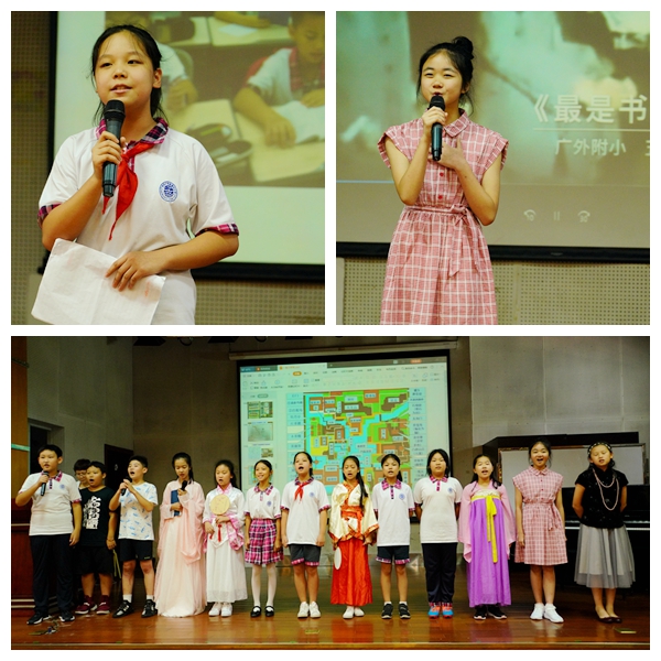 低年级为前半场活动拉开了精彩的序幕,而后我们迎来了六年级(4)班即将毕业的孩子们带我们一起参观他们的“家”,班主任刘老师讲述了“家文化”其中包括有“家规”、“家训”等“家法”等,创设温馨氛围,但学习生活有章法可循;随后四年级(2)班的两位小记者向我们介绍了他们班级的成长足迹,每一个孩子在杨老师的带领下,都能饱读诗书,争当“书香少年”;最后上场的是五年级的(4)班,他们班的班名是“云溪诗意”班如其名,在老师的影响下班级处处充满了诗情画意,将“诵经典 读名著”进行到底,也逐渐影响着身边其他同学。