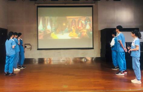初二(4)班陈心怡、麦宝允、陈炜斌、朴麟远、梁裕宁5位同学为我们带来《未闻花名》配音片段。作为本次比赛唯一的日语配音班级,5位同学声音以及情绪的爆发力,让所有观众都赞叹不已。