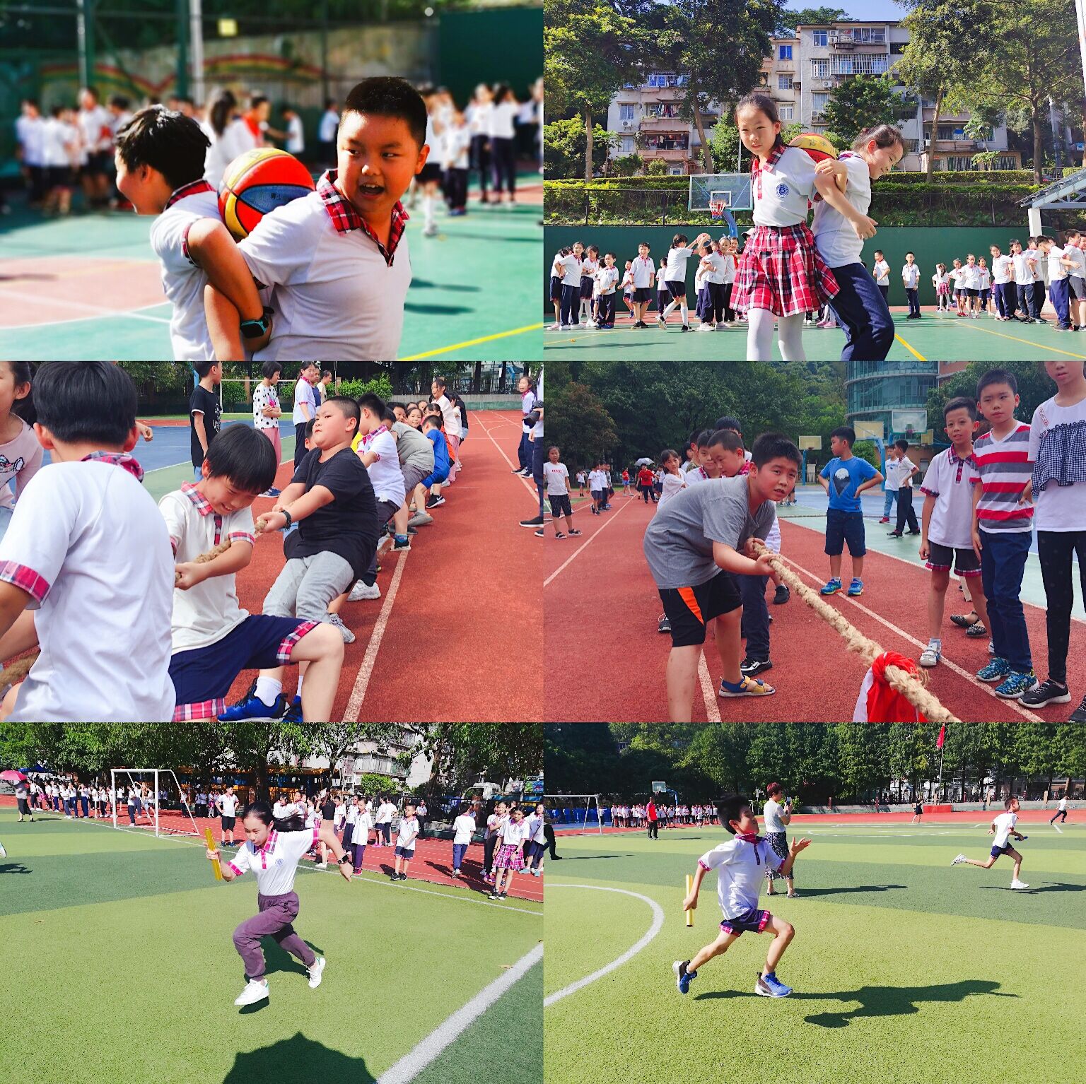 “背夹球、拔河、篮球接力赛”等项目,充满了趣味性。同学们积极参与、热情高涨,比赛精彩纷呈、高潮迭起。充分展现了附小学子团结向上、拼搏进取的精神面貌。
