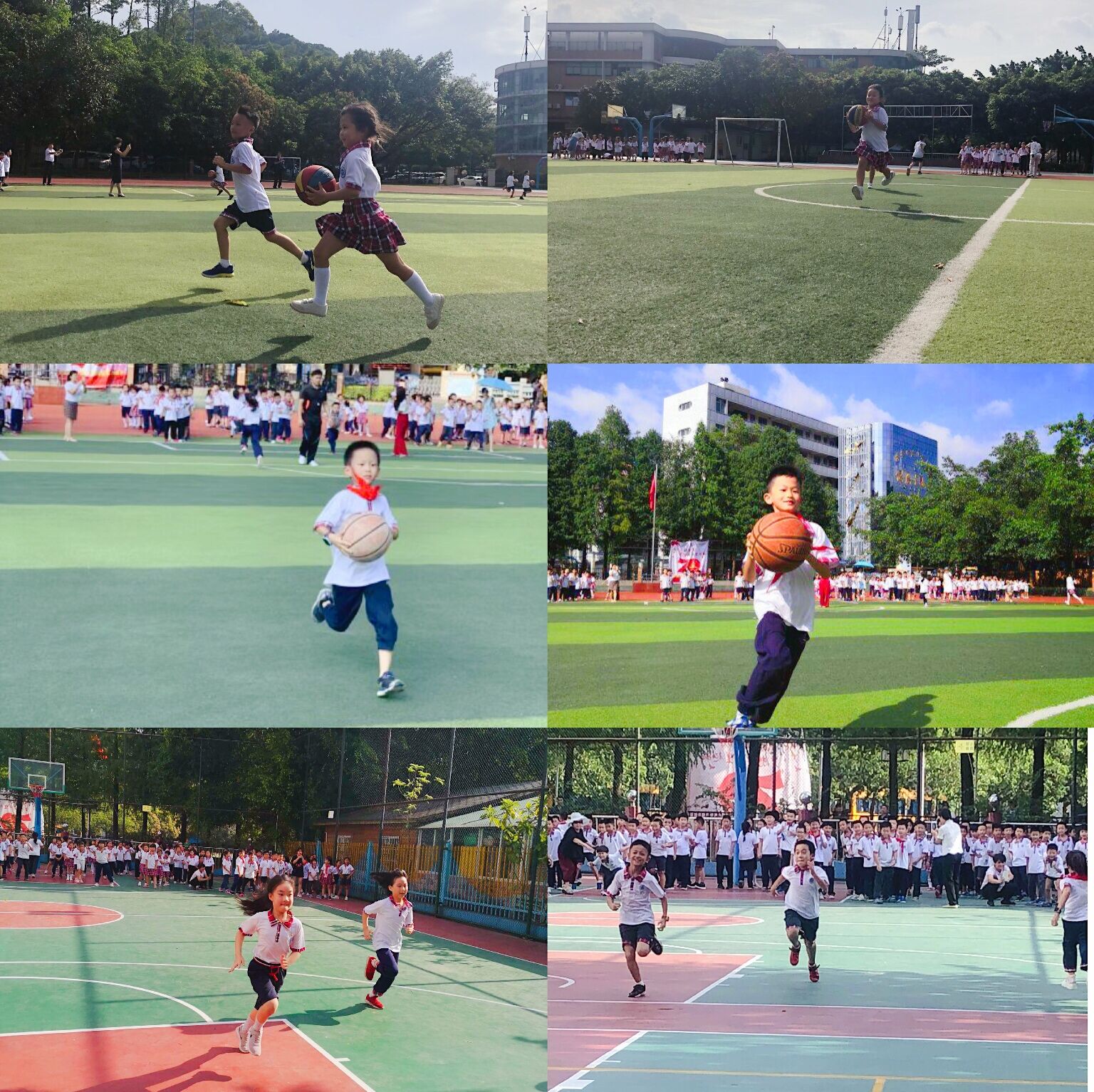 瞧,低段的小朋友们,正在进行激烈的“篮球迎面接力”比赛,只见参赛队员飞奔着快速向对面奔去。在比赛中,孩子们跌倒了,又爬起来,一张张红朴朴的小脸蛋展现了不屈不挠的精神,向我们诉说着:坚持就是胜利,再痛苦,也要坚持到最后!