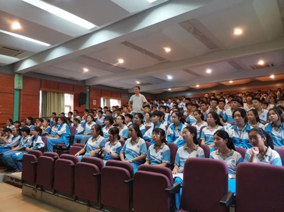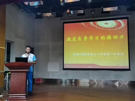 本网讯 2019年10月10日下午,初二年级在云山礼堂召开本学期第一次年级级会。会议由级长程向阳老师主持,初二年级全体师生参加,学生处副主任张晓鹏与会并讲话。