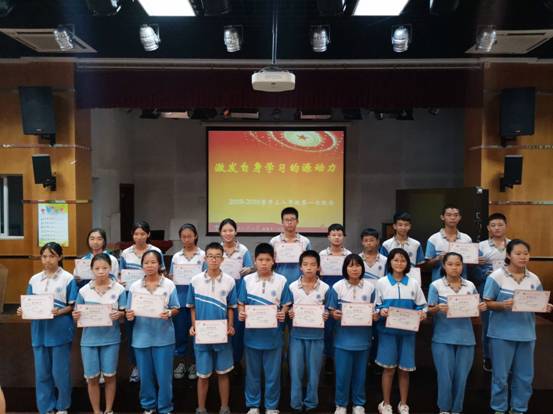 第一次月考结束,会上,程向阳老师对初二年级优秀学生以及进步学生代表予以表彰,期望他们能继续奋勇向前,其他同学要以此为榜样。